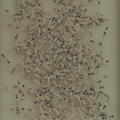 The current work to come out of the Thwaites studio is “Silent Music”. This work deals with music rendered silent due to war and oppression, as well as more abstract considerations about the death of music.