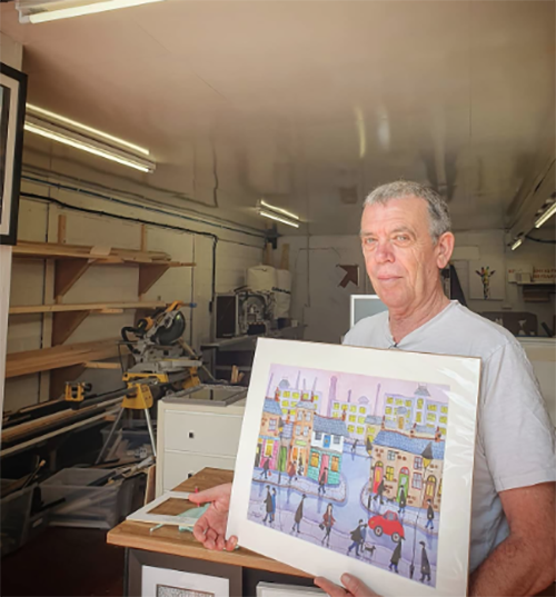 Working primarily in watercolour, but also in oils, I portray the rhythms of everyday life through scenes that celebrate the character of towns, villages, and the people who inhabit them. My paintings present a world where architecture and community intertwine, each street and building rendered with a sense of individuality and warmth. The interplay of colour and light in my work conveys the subtle transitions of time—dawn, dusk, or the gentle aftermath of rain—while stylised figures and playful details express the vibrancy and stories of daily existence.