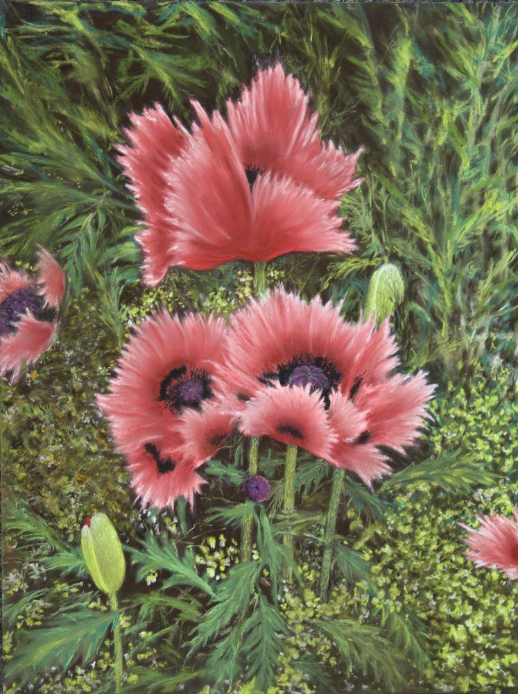 Deep red poppies set against a background of lush green foliage - it can't be more summer than that!