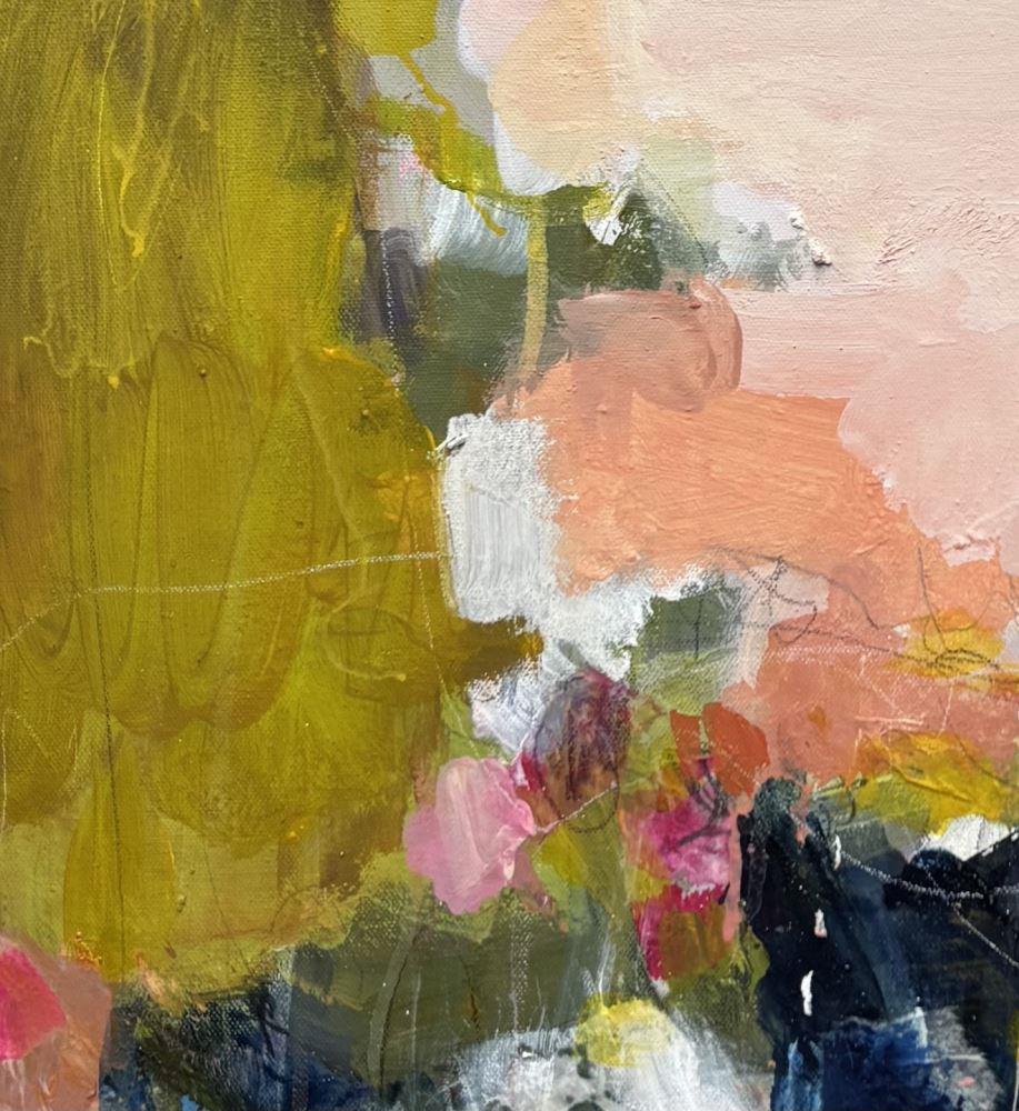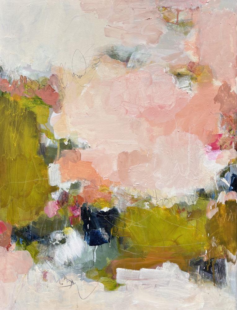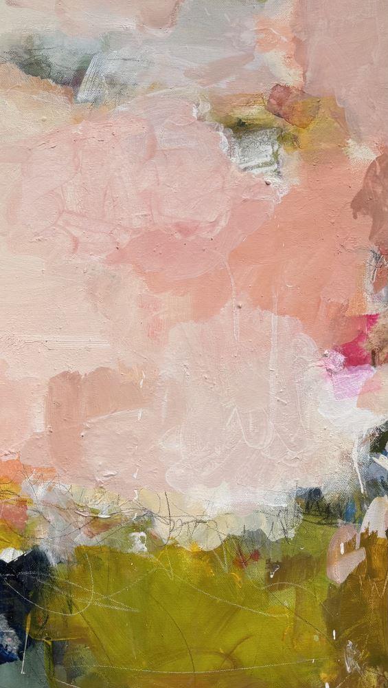 This lyrical, abstract painting was inspired by an exploration of the spring like feeling of hope, with tender shoots budding into new life. I frequently return to the theme of hope. Hope, of course, is not just an emotion but also a motivational system. I notice in myself that spring time becomes a time for me when I feel not only more uplifted but also more energetic in terms of new ideas and projects. This painting speaks of the renewed energy and life force that hope generates.