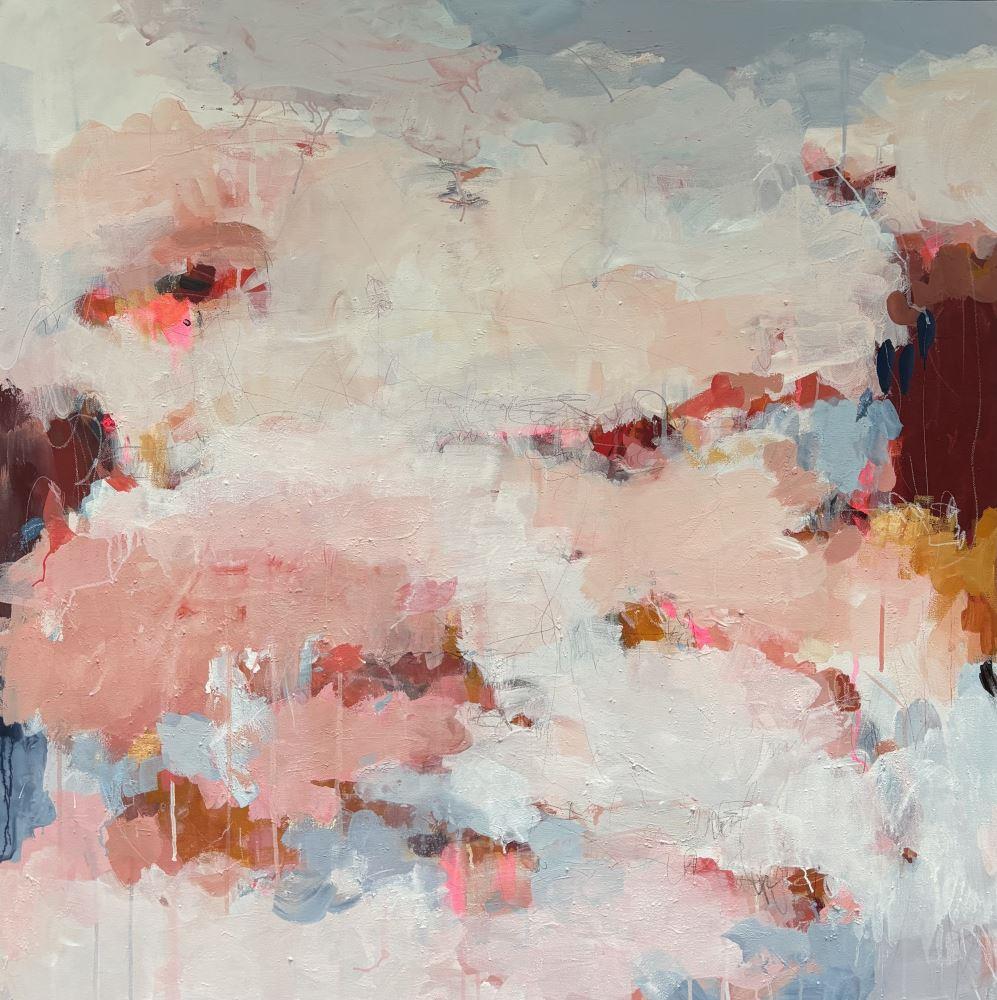 This lyrical, abstract painting was inspired by an exploration of the theme of love. As a therapist with a particular interest in relationships, I have learned over the years that love is the most important theme of all for most people, either through its absence or the experiences of loving and being loved. 'Touch Of An Angel' speaks of tenderness and softness; that moment when we experience a special and deep connection with another person which may be experienced as being touched by an angel.