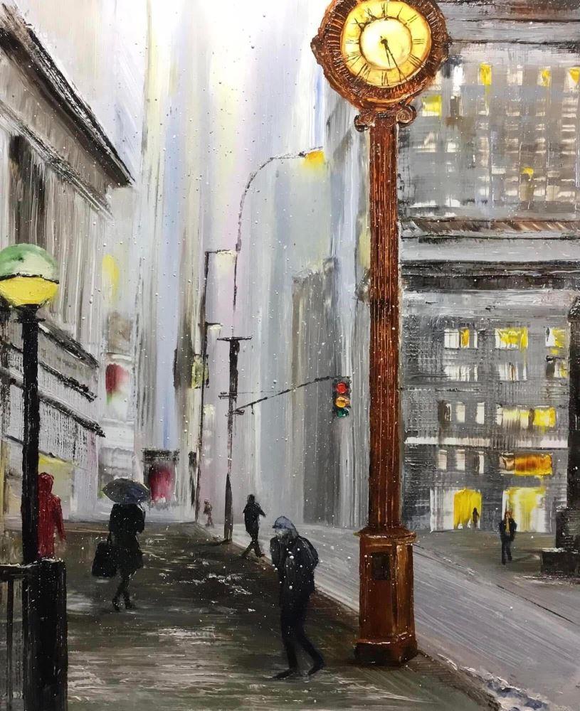 A cityscape depicting commuters making their way home on a cold, winter's evening. Inspired by a friend's description of a New York City break.