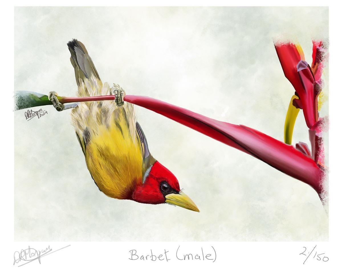 Vivid and full of character, Barbet Majesty captures the striking presence of the male Barbet—a tropical bird renowned for its brilliant colours and charismatic charm.