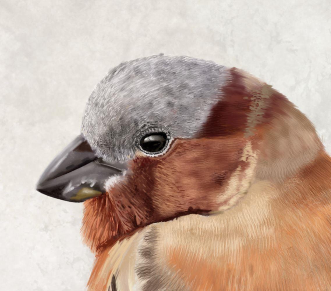 The artist's attention to texture and light captures both the delicacy and vibrancy of this charming species.