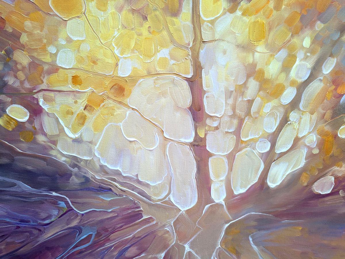 Autumn Beckons is an expressive, semi-abstract original oil painting of an Autumn path. It is 36x36x1.5 inches. The painting focuses on the centre of the painting where light is radiating out beneath the trees. It hints at revelation or hope or some kind of promise – or at least that is what it says to me! The painting was inspired by actual autumn walks in an around the Ashdown Forest (of Winnie the Pooh fame) and the Weald of Sussex where there are plenty of woodlands and copses and nooks and crannies that I never tire of exploring in different seasons. Painted on deep edge canvas, edges white, ready to hang and comes with certificate of authenticity