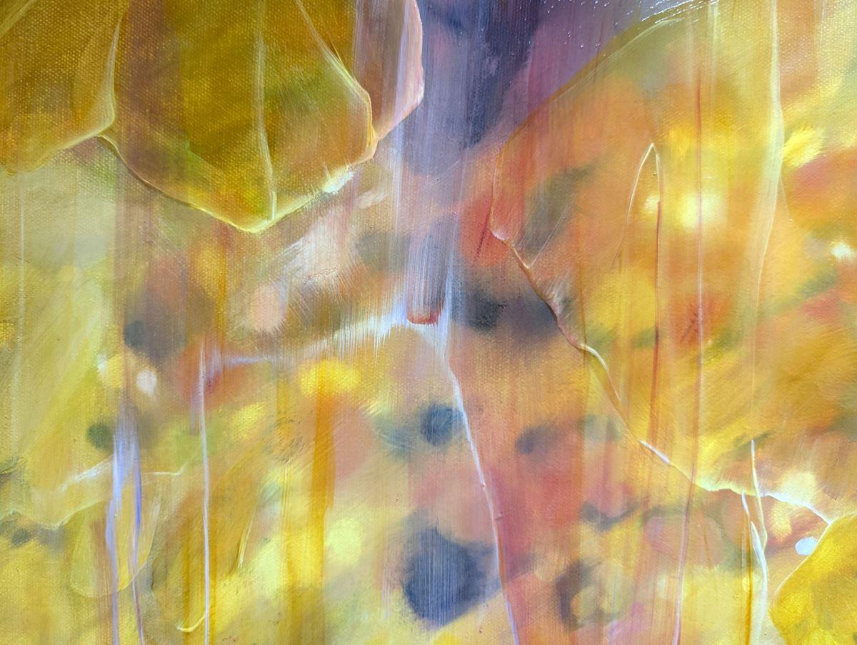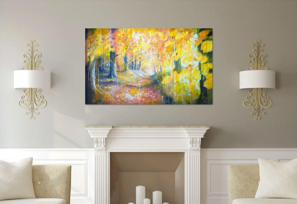 The Autumn Portal is a large otherworldly oil painting of an autumn forest path being revealed though a veil. It is 60x36x1.5 inches. The painting is large enough so that when you stand before it you are drawn along the path until it descends serenely into the distance. Anything you can dream of could be just round that bend. The trees on each side are in autumn colours of orange, magentas, yellows and greens. Some are defined and some are almost abstract. Shades of violet and faded purples play off against the vivid yellows. A low November sun sends beams of light through from the right casting tree shadows across the path and into the deeper woodland on the left. There is a mystery to the painting and the inference is that there is a portal here that may lead elsewhere. It was inspired by recent walks by the Ashdown Forest in East Sussex where Autumn of 2025 was especially vibrant and almost fairy tale in in nature's last big statement of the year. Painted on deep edge canvas, edges painted to match, ready to hang and comes with certificate of authenticity.