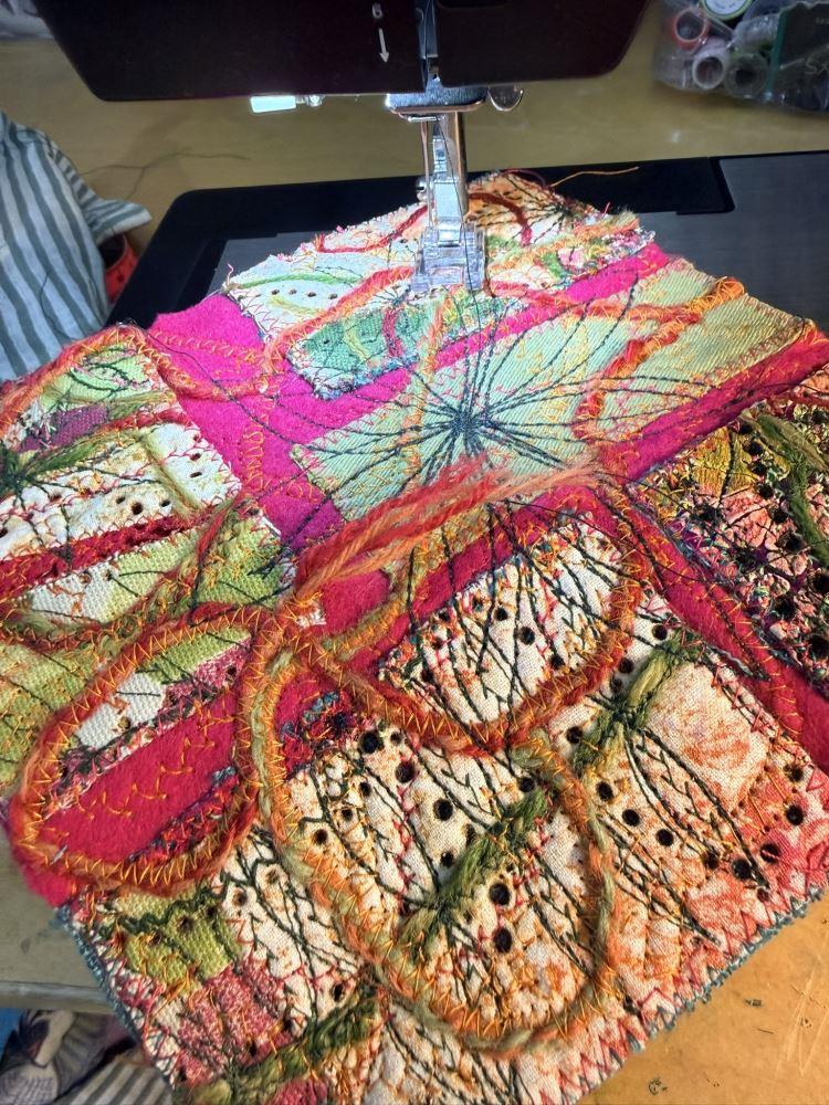 Textiles on Upcycled textile (Upcycled textile, machine stitched, melted and singed)