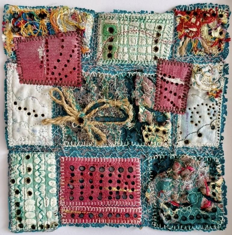 Textiles on Upcycled textile (Upcycled textile, machine stitched, melted and singed)