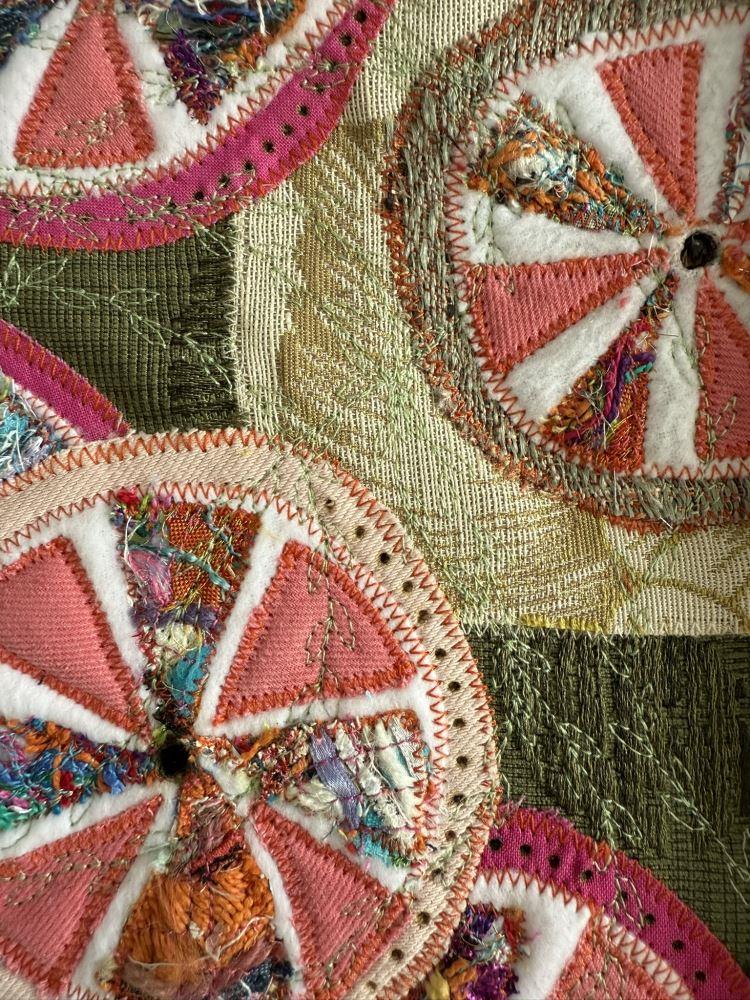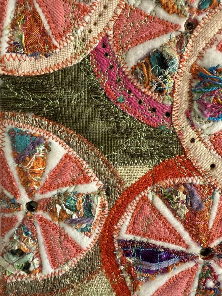 Textiles on Upcycled textile (Upcycled textile, machine stitched, melted and singed)
