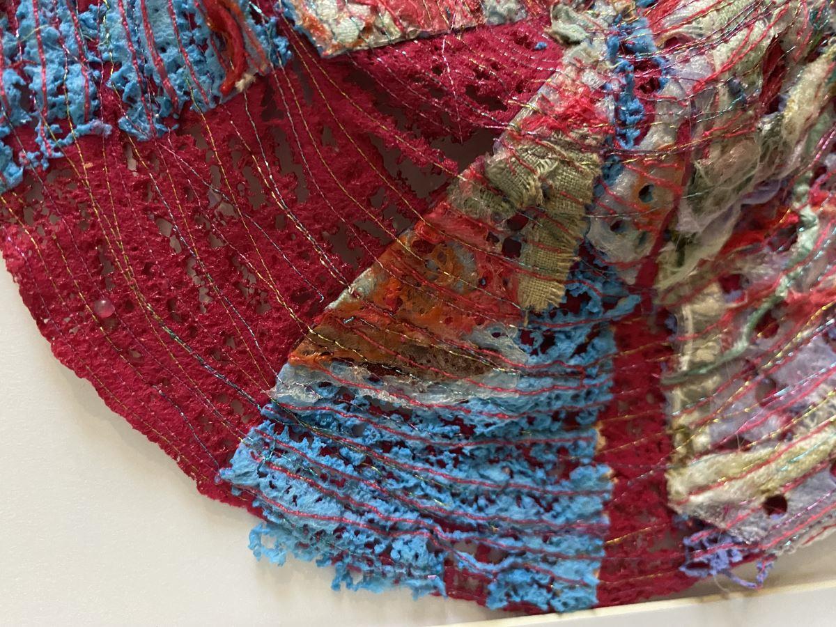 Fabric on Upcycled textile on felt (Upcycled textile, machine stitched, melted and singed)
