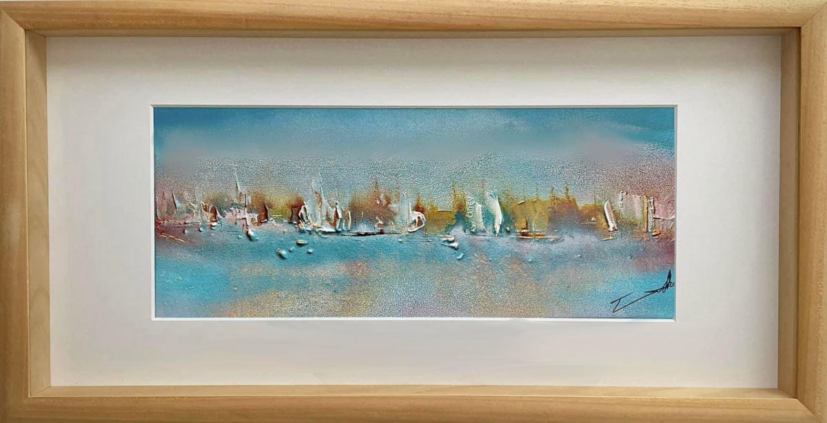 Mixed Media on Canvas (Deep Cut Mounted in Natural Soft Wood Deep Recessed Frame )