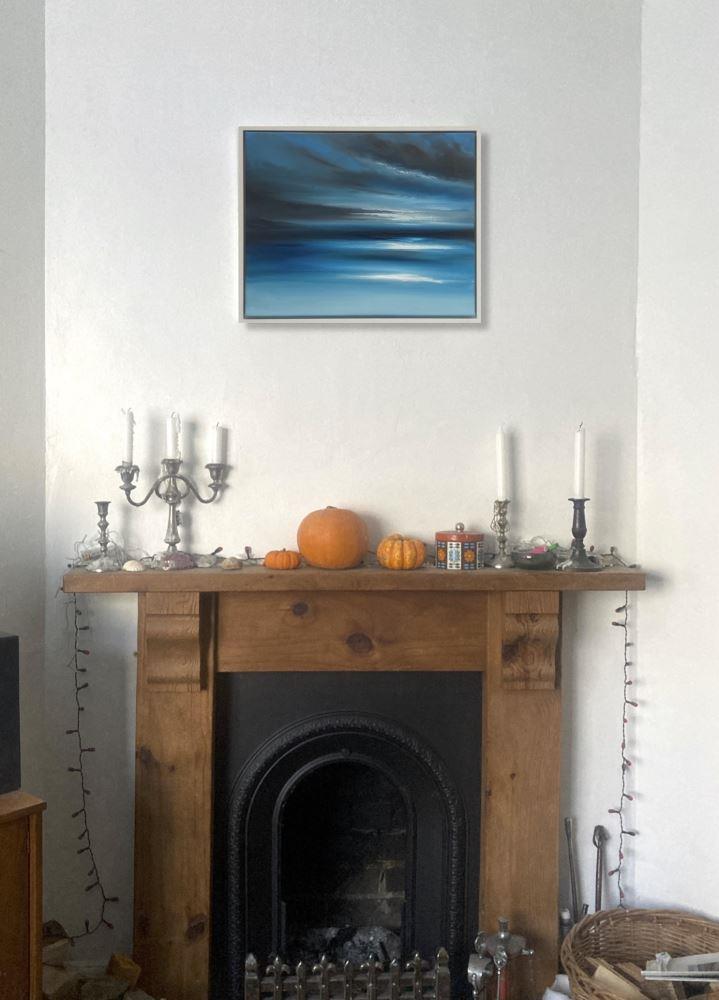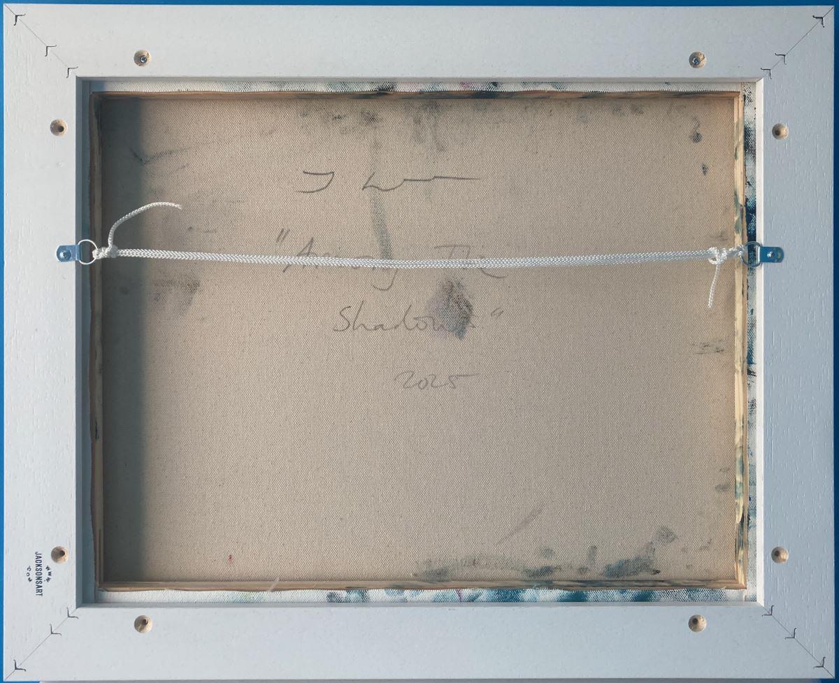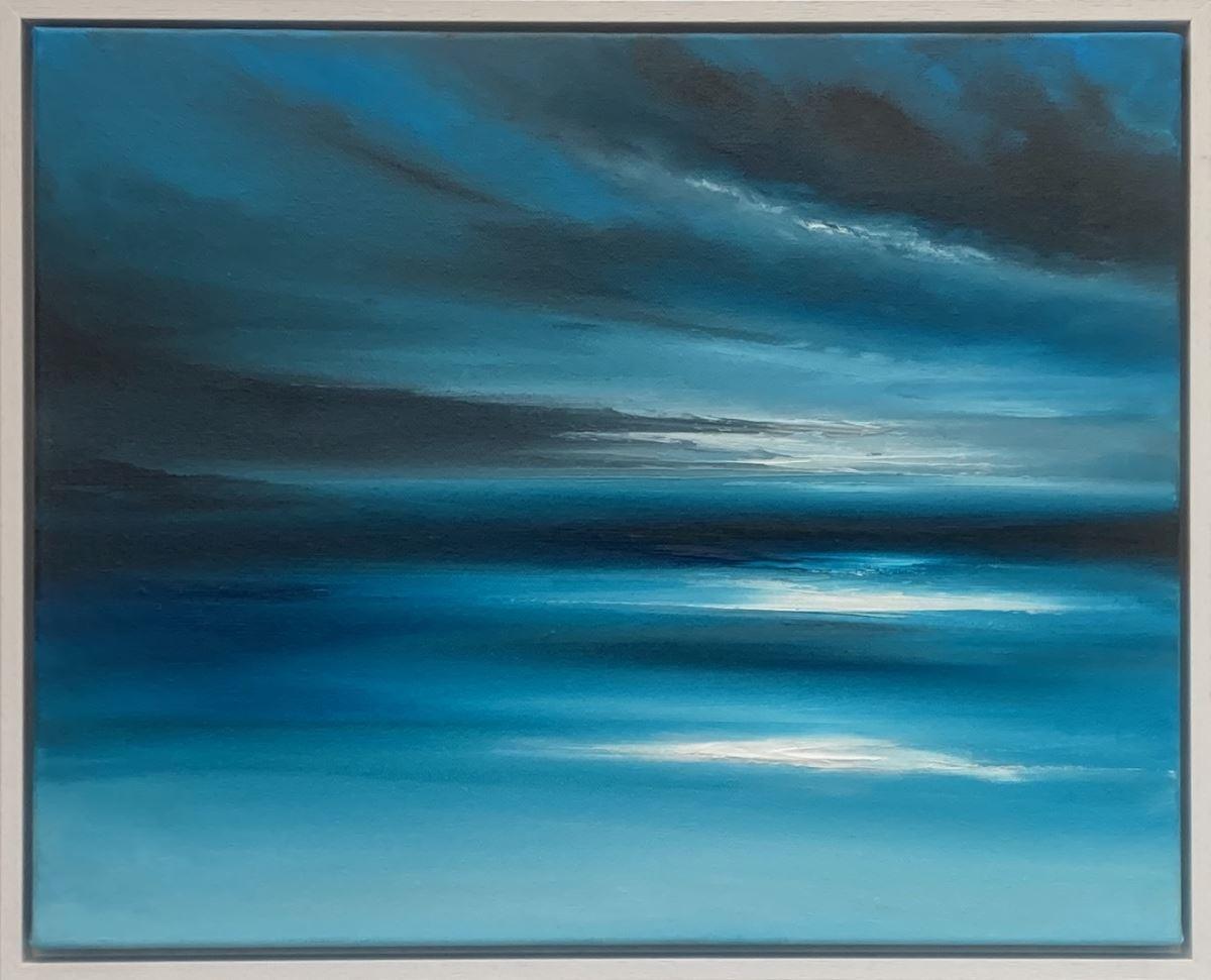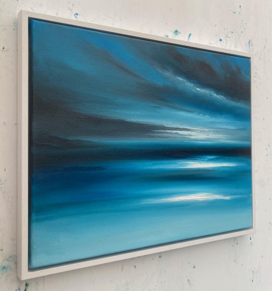 “Among the Shadows” is a 40x50cm oil on canvas abstract seascape painting on a 2cm deep canvas, mounted in a 43x53x3cm white floating frame. It's ready to hang and comes with a certificate of authenticity.