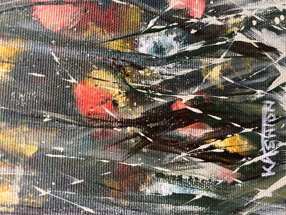 Size: H 61cm (24”) x W 31cm (12”) If you require a slightly smaller version, have a look at RISE AND SHINE which measures 51cm x 25cm (20” x 10”), a similar painting but still original or you can commission a bespoke piece.