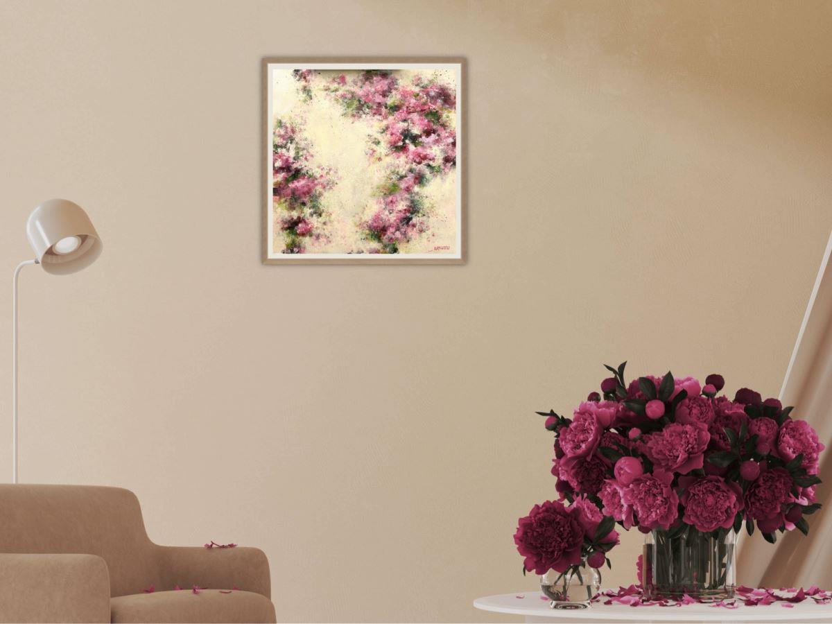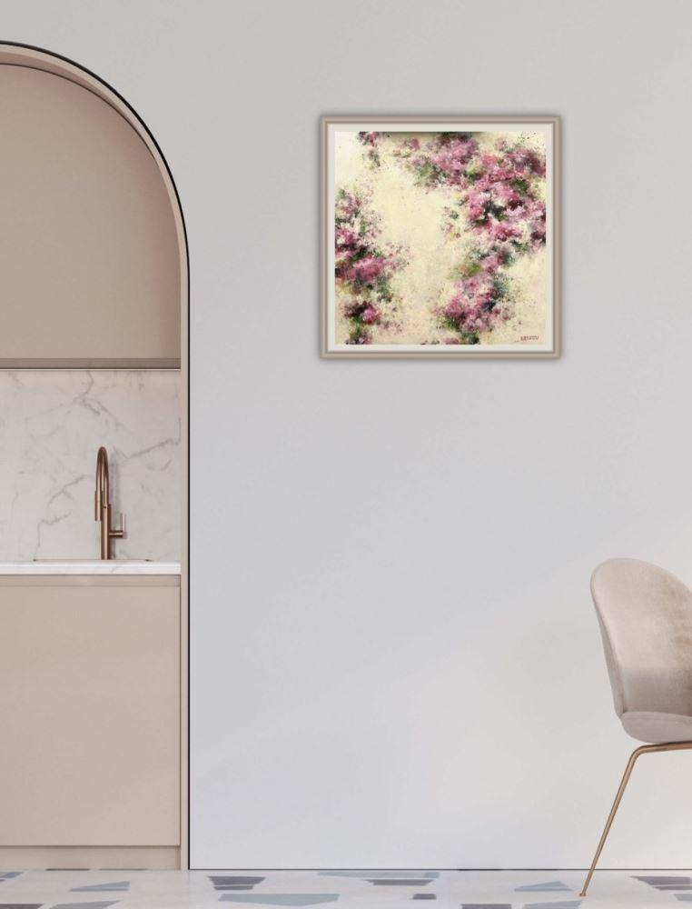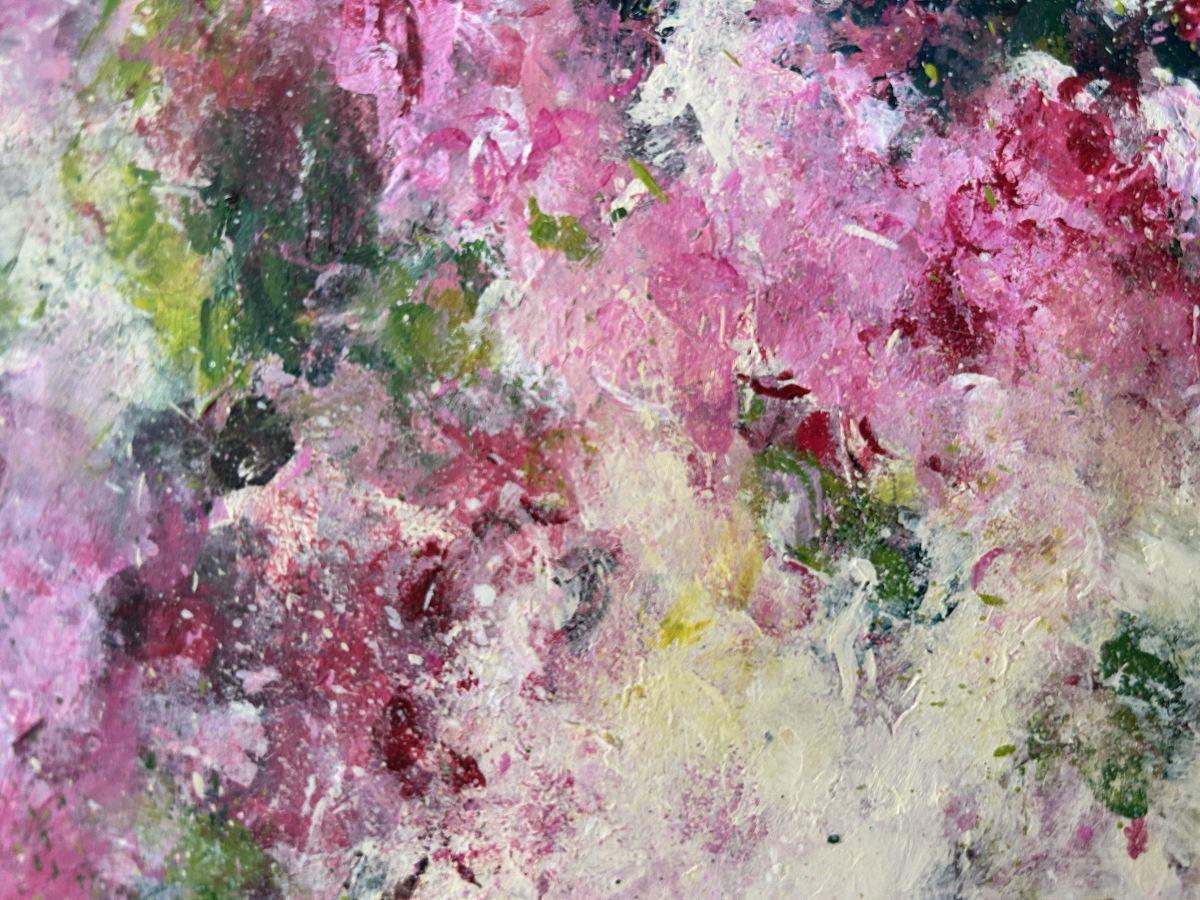 LOVING YOU IS EASY was created with my fingers, an intuitive technique whereby the paint feels its way across the surface in a loose, abstract fashion. Through each layer the flowers emerge, creating movement and unpredictability, allowing the painting to evolve organically.