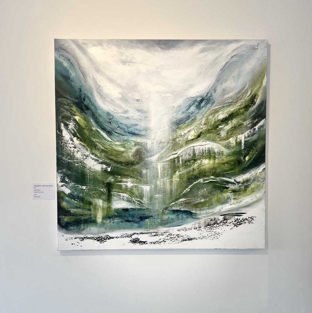 Fluid tones of green, whites, and blue evoke the icy waters with the rugged beauty of nature. Layered textures create a sense of depth and dimension, blending ethereal hues with bold strokes.