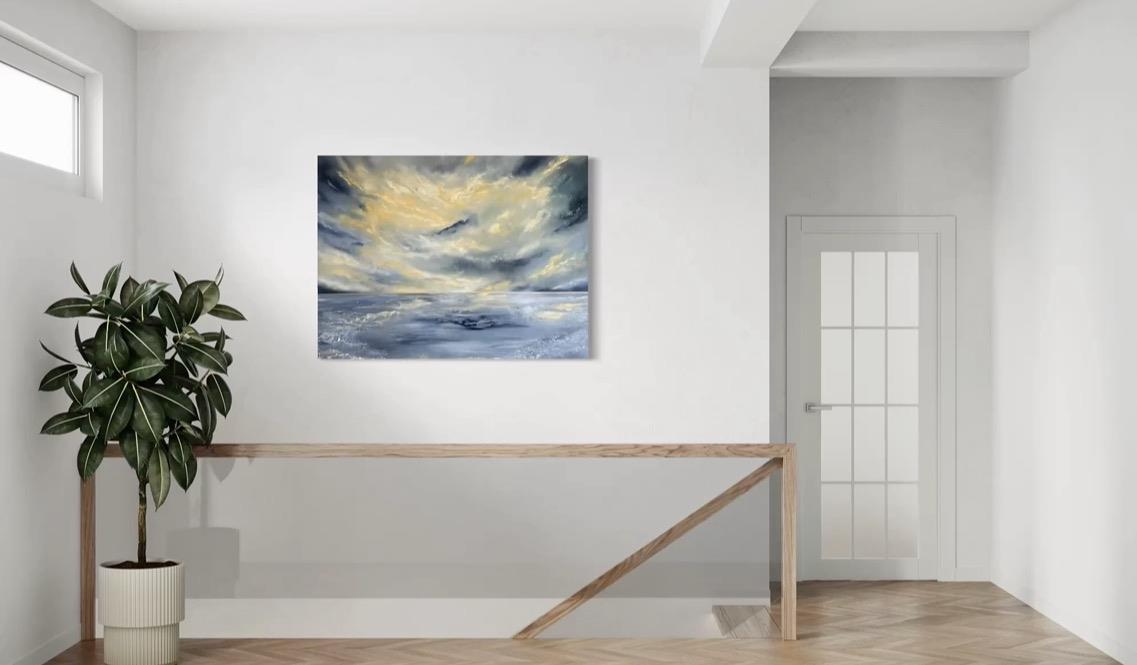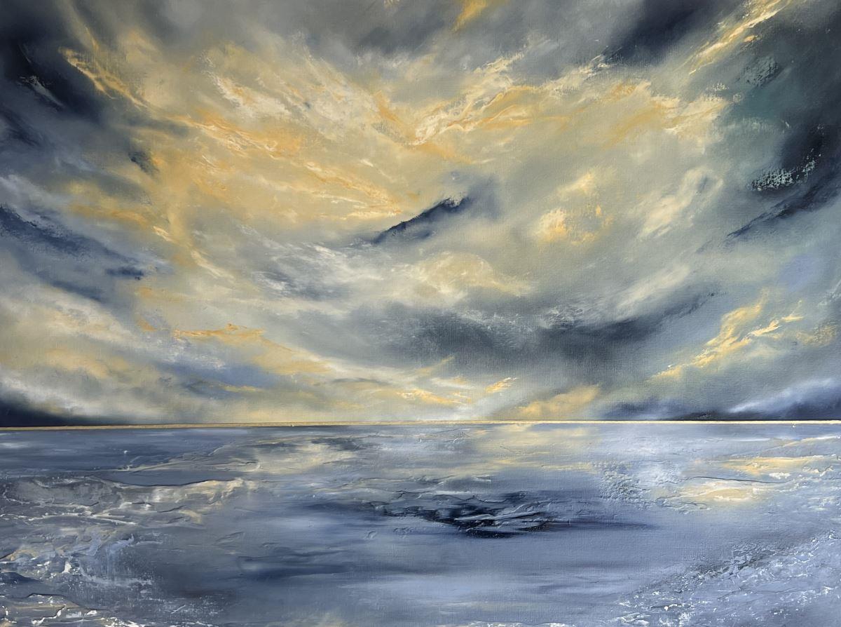Inspired by the north coast of Cornwall, Atlantic Light — North Coast explores the meeting of sea and sky at the far western edge. The painting focuses on light as a presence—fleeting, luminous, and immersive—suggesting both the vastness of the Atlantic and a more introspective, dreamlike space.