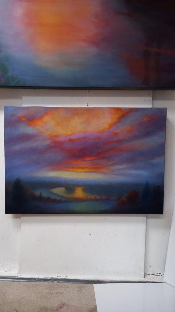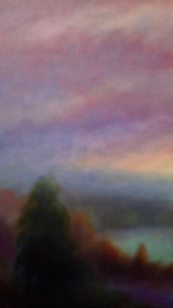 The view from Richmond Hill overlooking Petersham Meadow towards the River Thames, SW London. Impressionism blended with cloud forms to capture that fleeting moment of awakening. The vibrant oranges and soft purples symbolize hope breaking through darkness. This painting brings a serene yet powerful energy, encouraging reflection and renewal, making your space feel alive with promise and the beauty of transformation.