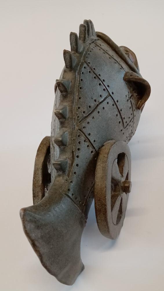 Clay on ceramics (Angry looking fish on wheels)