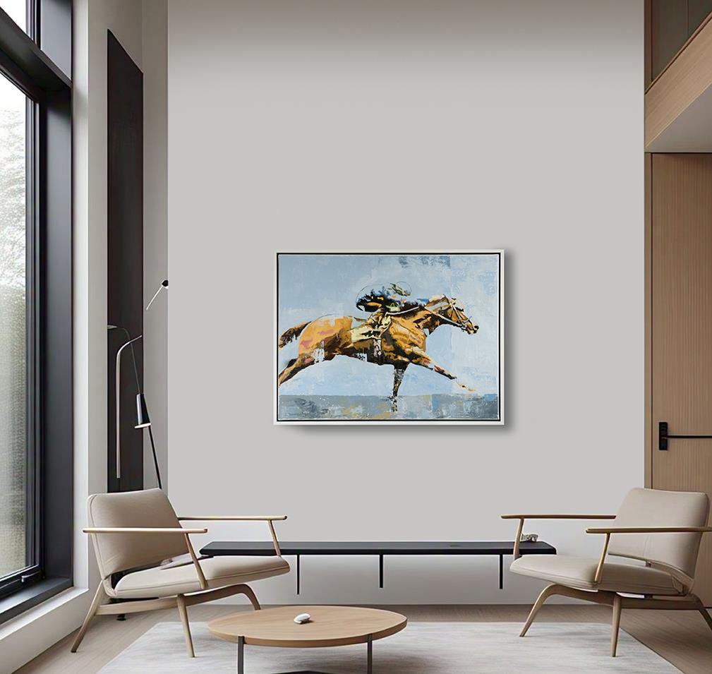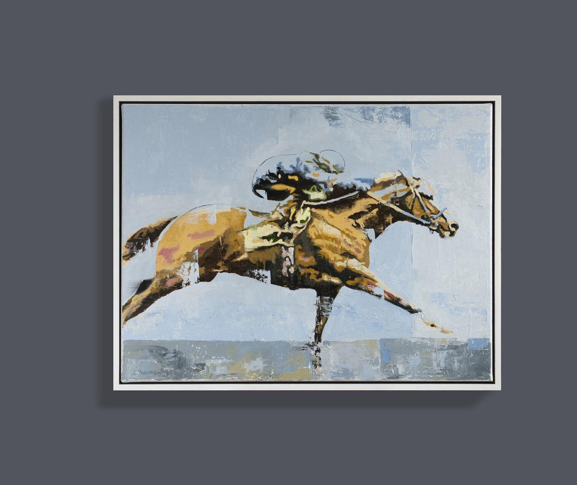 “Morning Stretch” ultimately speaks to renewal and energy—the start of a new day, the moment before exertion turns to triumph. It would appeal strongly to collectors interested in contemporary equestrian art that bridges the classical with the modern, offering both movement and mood in a single, commanding composition.