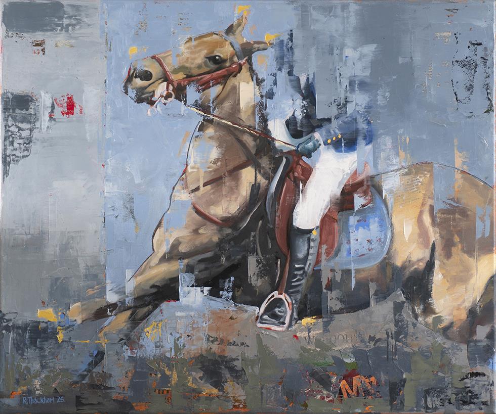 The main focus is on the polo pony, showing an energy, power, weight and movement, with the rider only being there in part, still showing amazing control over the animal but this not being the main purpose of the image.