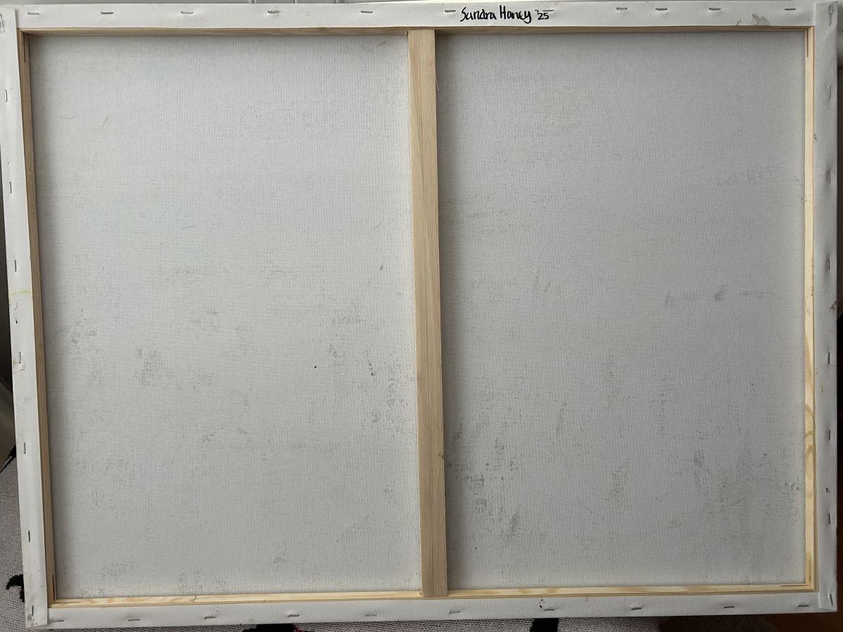 Oils on Canvas (On wooden stretcher frame with fixings ready to hang.)