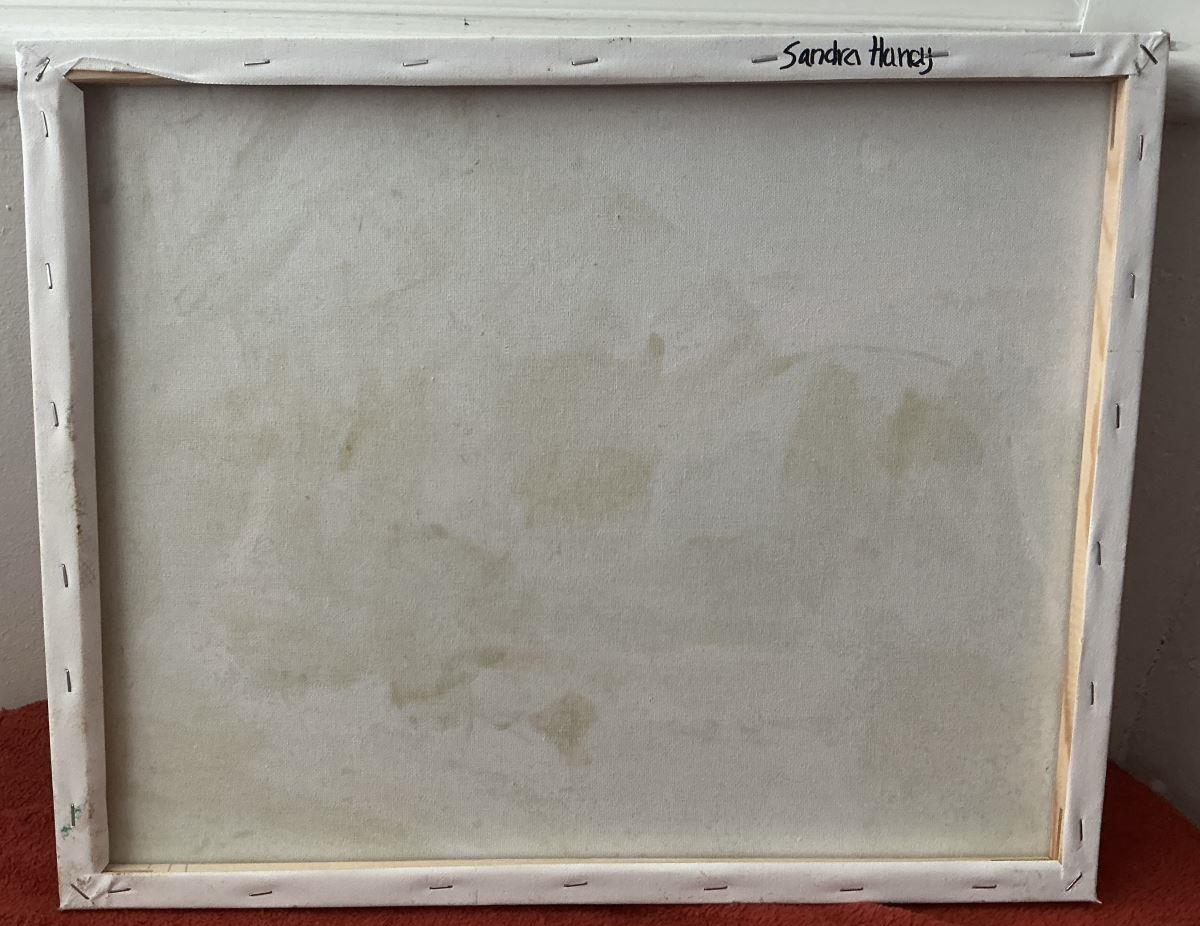 Oils on Canvas (On wooden stretcher frame with fixings provided so that it is ready to hang.)
