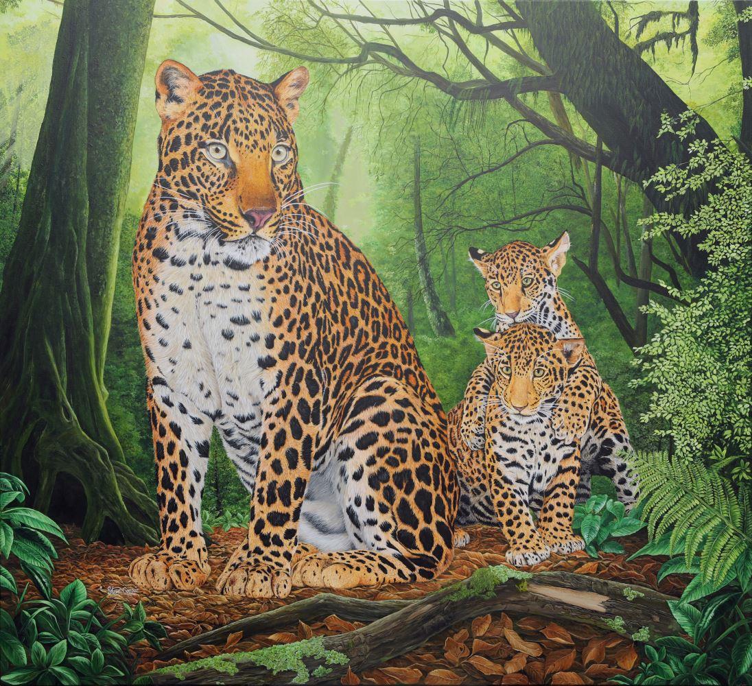 An endangered female Jaguar with her two playful cubs