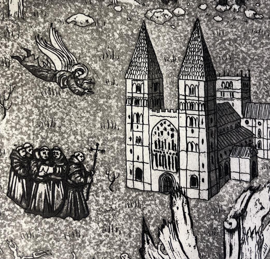 Dark Ages explores the period between the fall of the Roman Empire in 454 and the death of Harold Godwinson in 1066. Through a series of vignettes a number stories interlace to create an exciting visual feast. This is the first print chronologically in a series of 'Histories'. See below for a full synopsis.