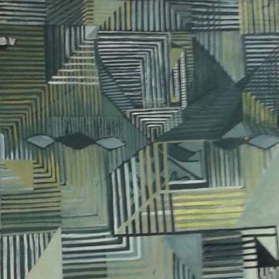 I am a painter inspired by Brutalist and Modernist architecture's sharp angles, clean lines, and geometric patterns.