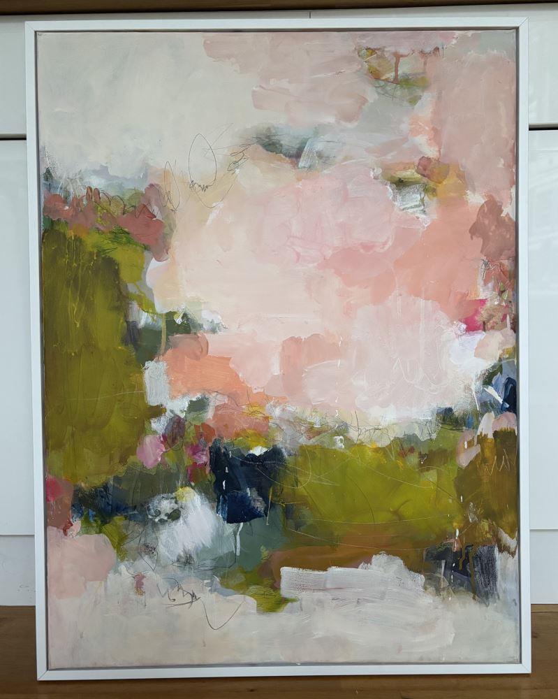 This lyrical, abstract painting was inspired by an exploration of the spring like feeling of hope, with tender shoots budding into new life. I frequently return to the theme of hope. Hope, of course, is not just an emotion but also a motivational system. I notice in myself that spring time becomes a time for me when I feel not only more uplifted but also more energetic in terms of new ideas and projects. This painting speaks of the renewed energy and life force that hope generates.