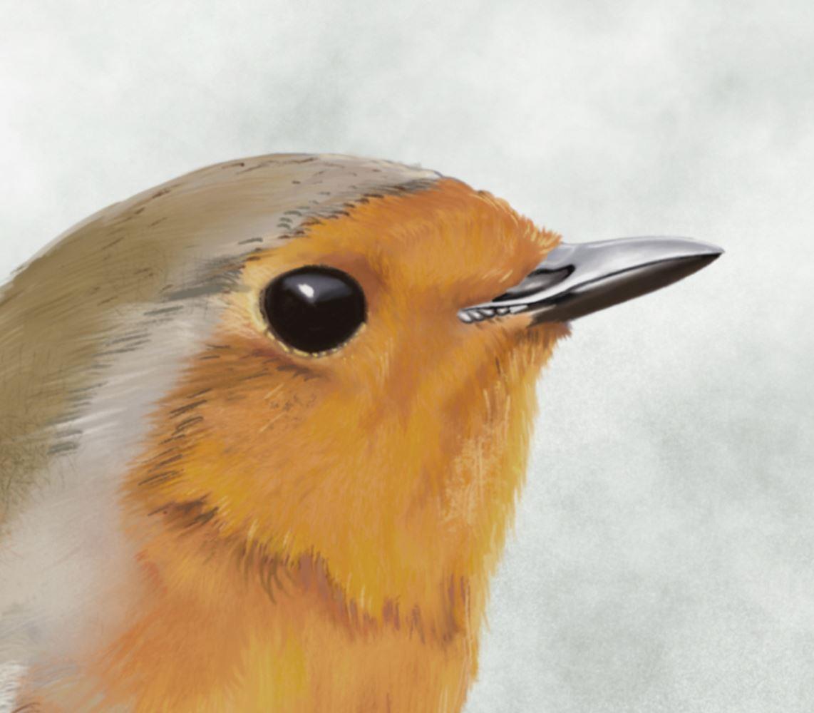 The Robin (Erithacus rubecula) is one of Britain's most beloved birds, often seen as a friendly companion in gardens and woodland clearings. In this artwork, the robin is shown perched confidently on a mossy log, its vivid orange breast glowing brightly against its soft brown plumage. The stance reflects the bird's alert, territorial nature, forever watchful over its domain.