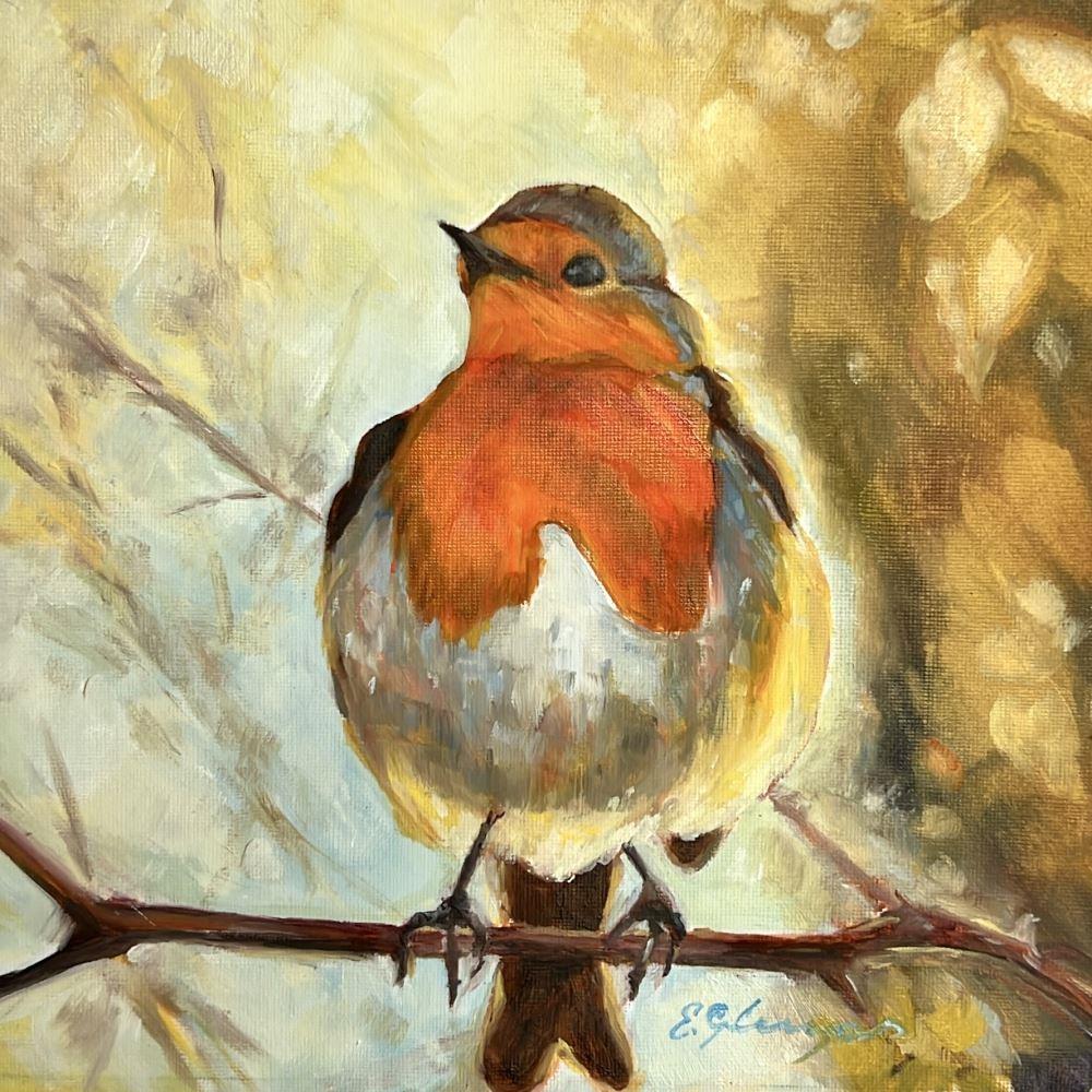 I always think a loved one id near by when I see a robin. This is true for many, always thinking of my mum. Painted in oils and frame din a contemporary frame for hanging.