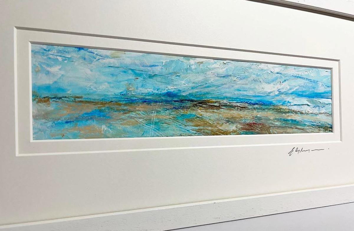 Seascape abstract painted with oil and cold wax creating textures and a feeling of immense freedom. Inspired by my holidays in Cornwall.