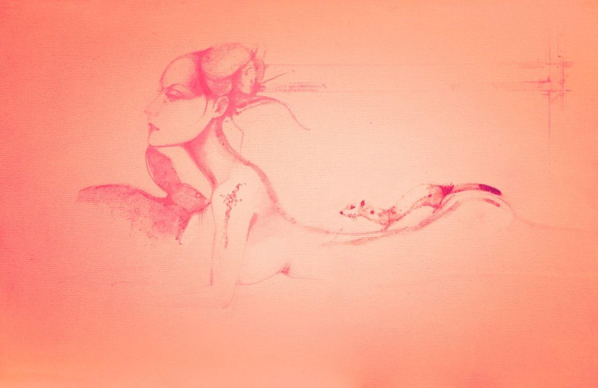 Nude with rabbit and sable 2023