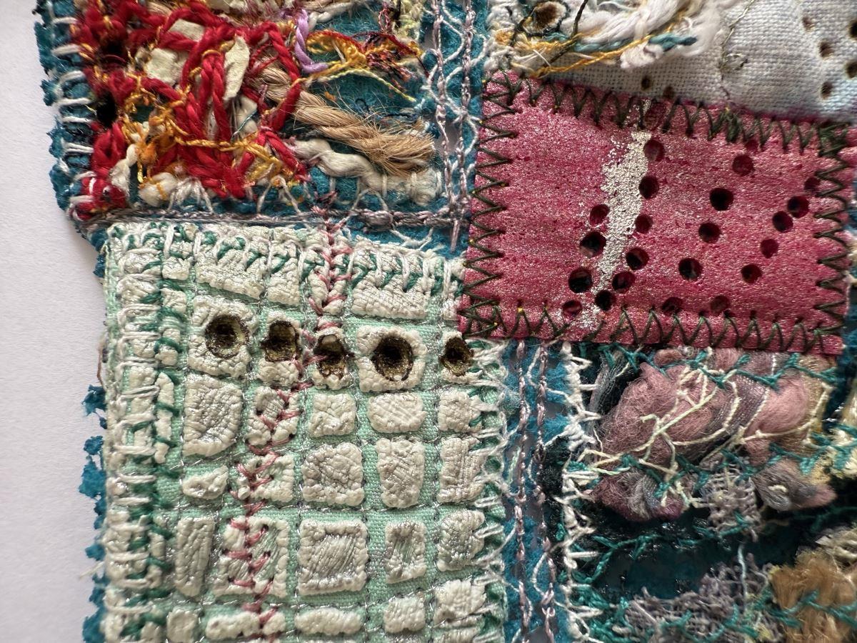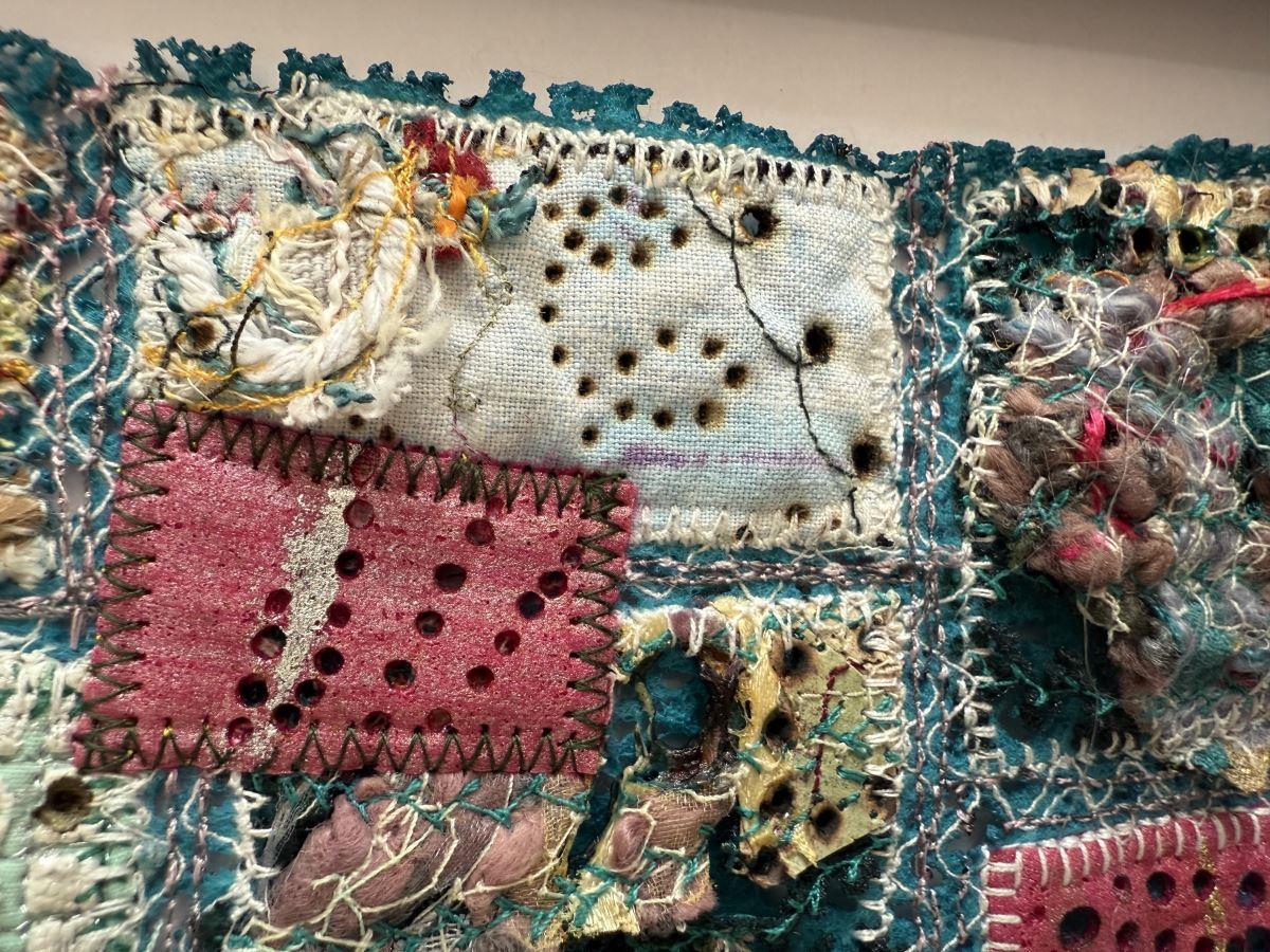 Textiles on Upcycled textile (Upcycled textile, machine stitched, melted and singed)