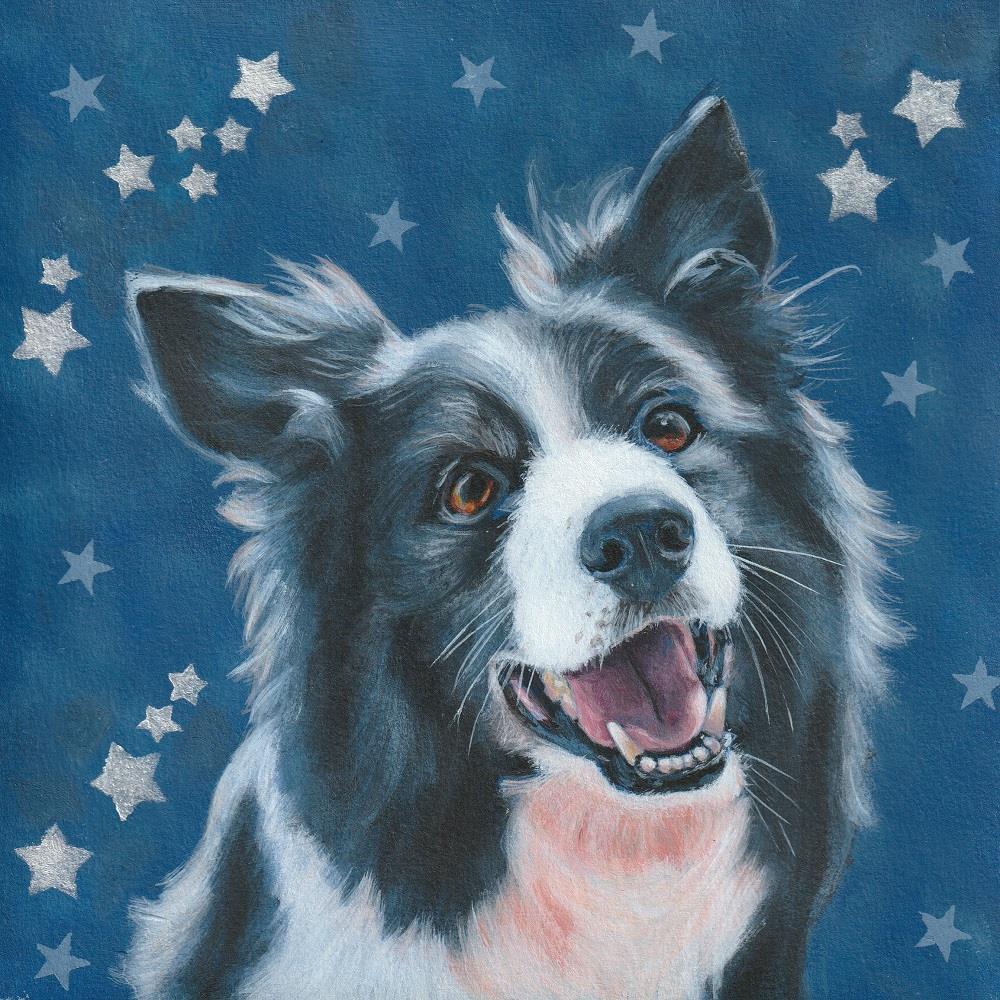 Border Collies are a favourite of mine, and this dog looked so joyful that I felt he captured all that is wonderful about the breed. I added the stars as he has such a star quality!