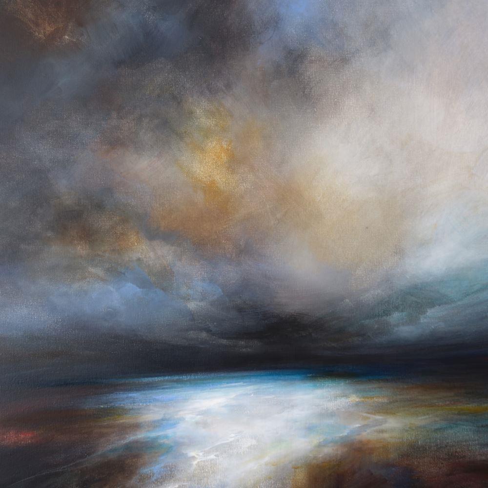 This is square format painting on stretched canvas, inspired by the light and weather of a small island off the south west coast of Ireland, where I spent time some years ago.