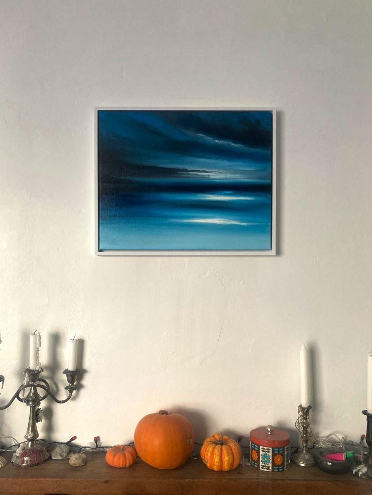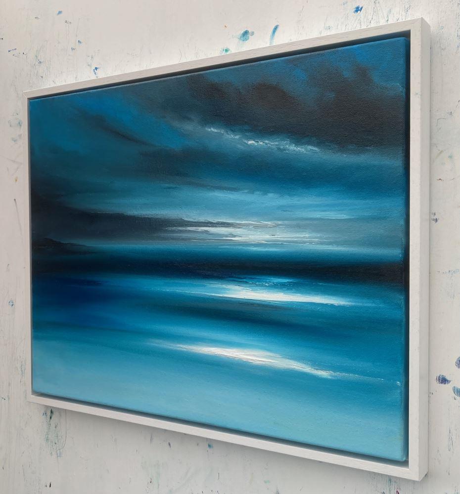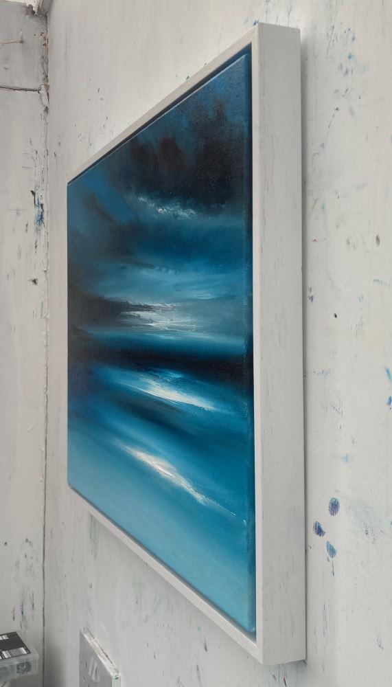 “Among the Shadows” is a 40x50cm oil on canvas abstract seascape painting on a 2cm deep canvas, mounted in a 43x53x3cm white floating frame. It's ready to hang and comes with a certificate of authenticity.
