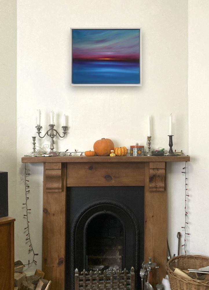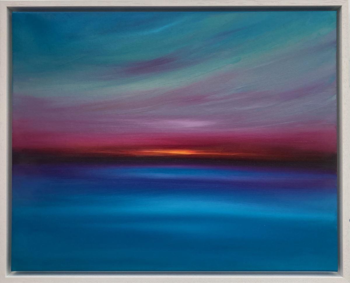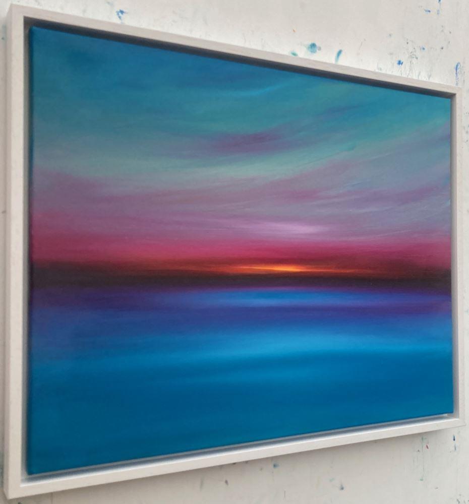 “Sky Wide, Deepest Blue” is a 40x50cm oil on canvas abstract seascape painting on a 2cm deep canvas, mounted in a 43x53x3cm white floating frame. It's ready to hang and comes with a certificate of authenticity.