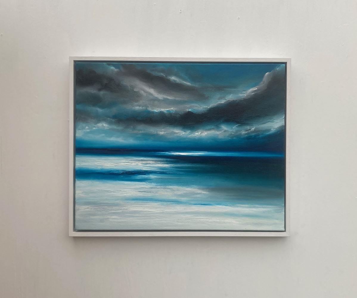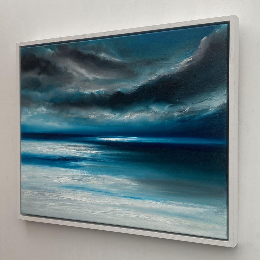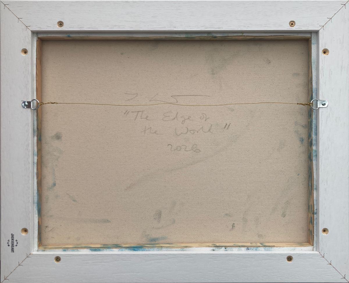 “The Edge of the World” is a 40x50cm oil on canvas abstract seascape painting on a 2cm deep canvas, mounted in a 43x53x3cm white floating frame. It's ready to hang and comes with a certificate of authenticity.