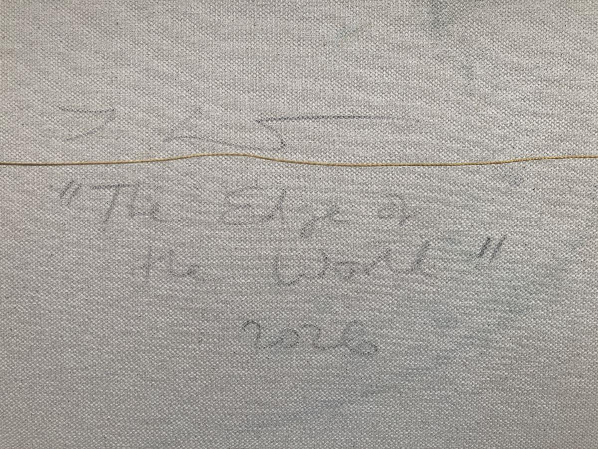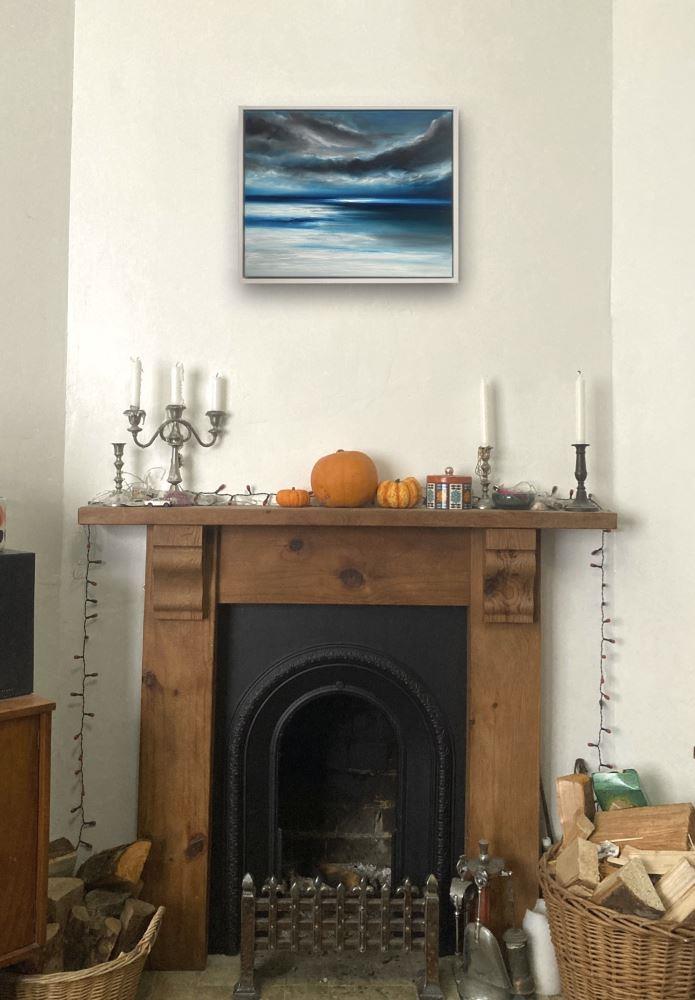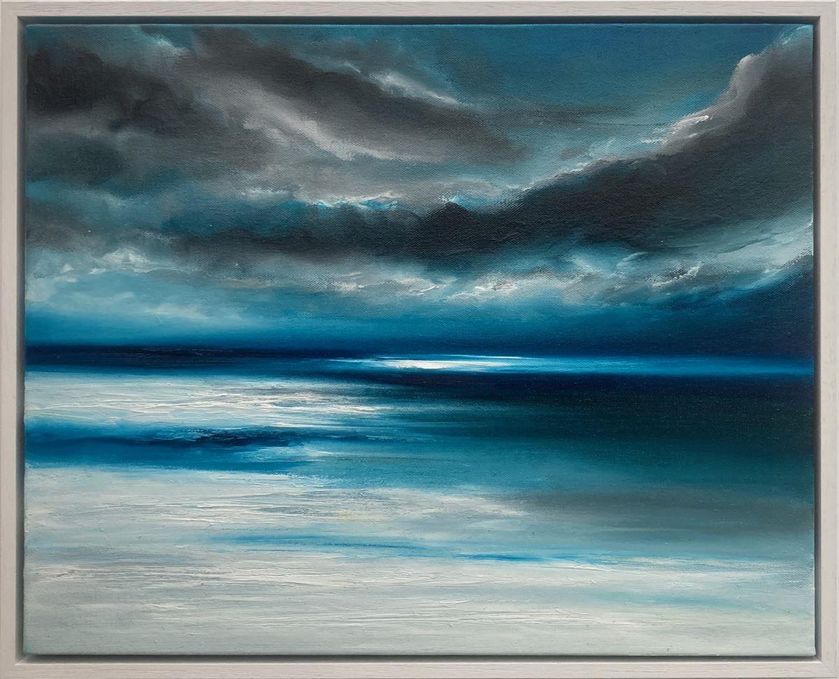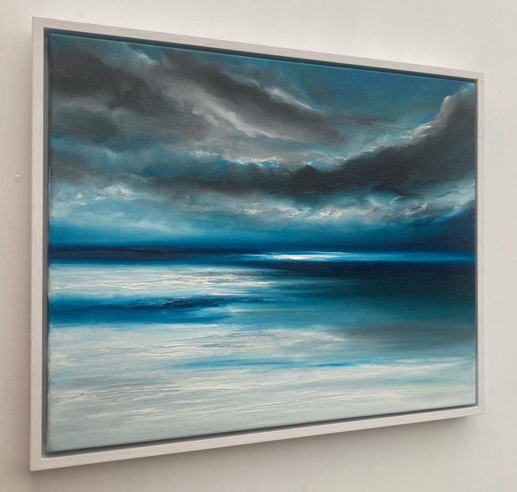 “The Edge of the World” is a 40x50cm oil on canvas abstract seascape painting on a 2cm deep canvas, mounted in a 43x53x3cm white floating frame. It's ready to hang and comes with a certificate of authenticity.