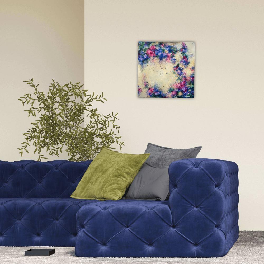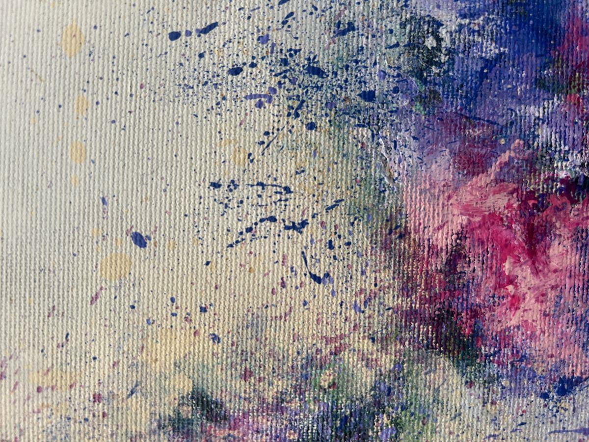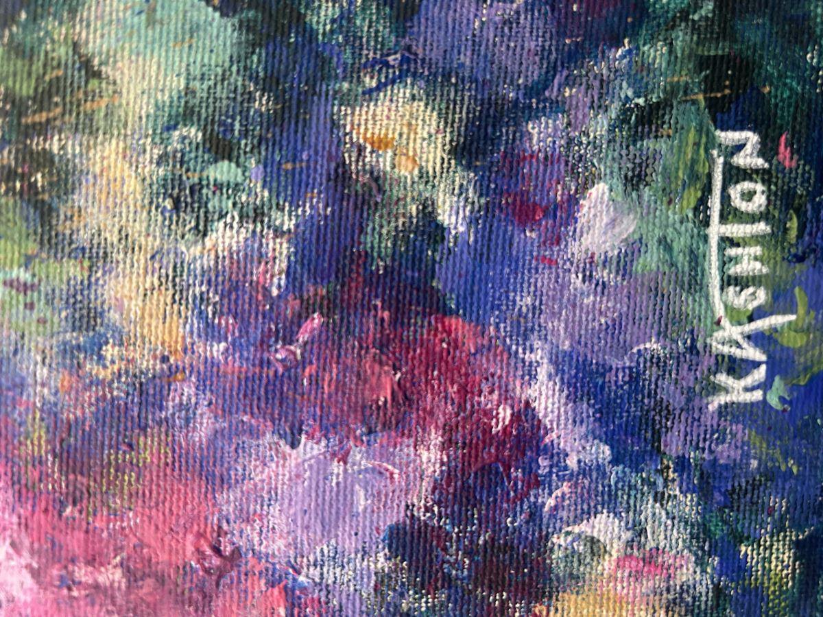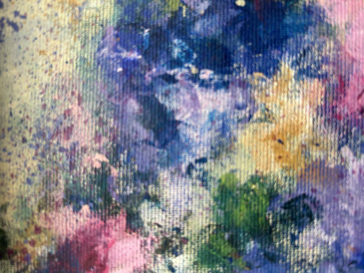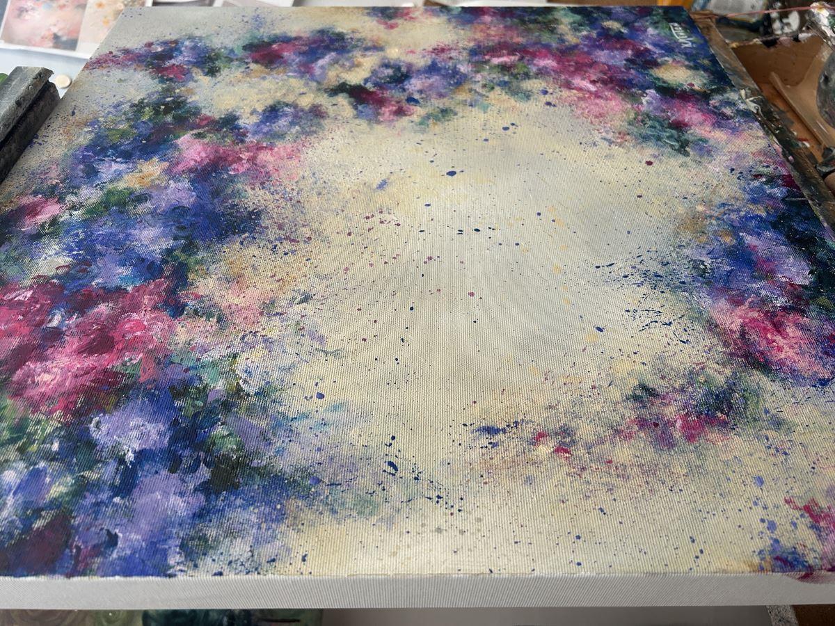 AMONGST FRIENDS was created mostly with my fingers, an intuitive technique whereby the paint feels its way across the surface in a loose, abstract fashion. Through each layer the flowers emerge, creating movement and unpredictability, allowing the painting to evolve organically.