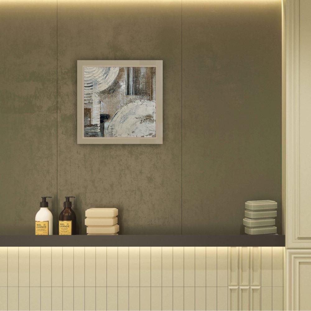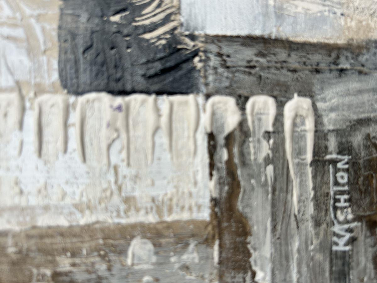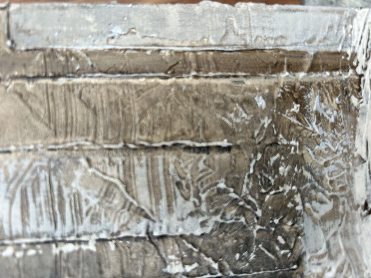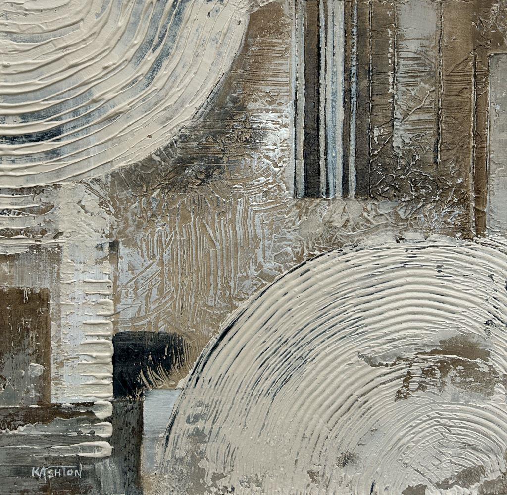 An intuitive abstract piece in tactile neutrals created with palette knives and joint compound (a sort of moulding plaster) which makes for wonderful texture. This piece created itself as it spoke to me throughout the process so I responded with what it asked for. I love it when this happens!