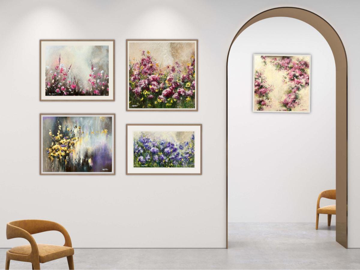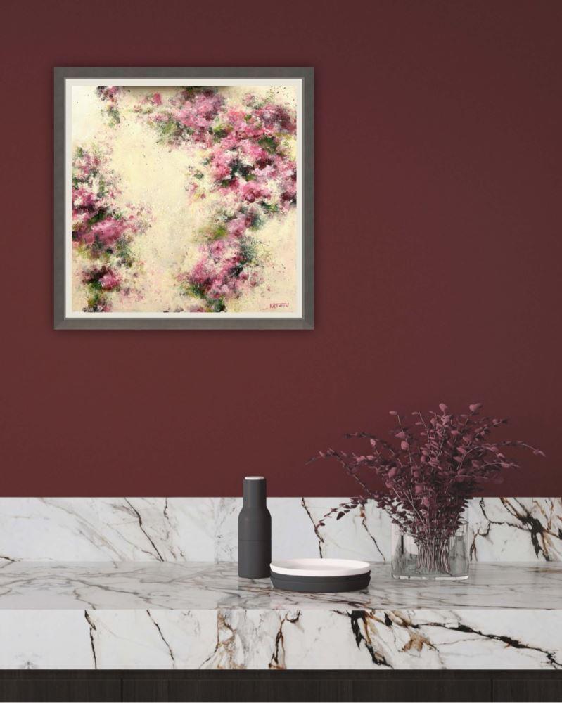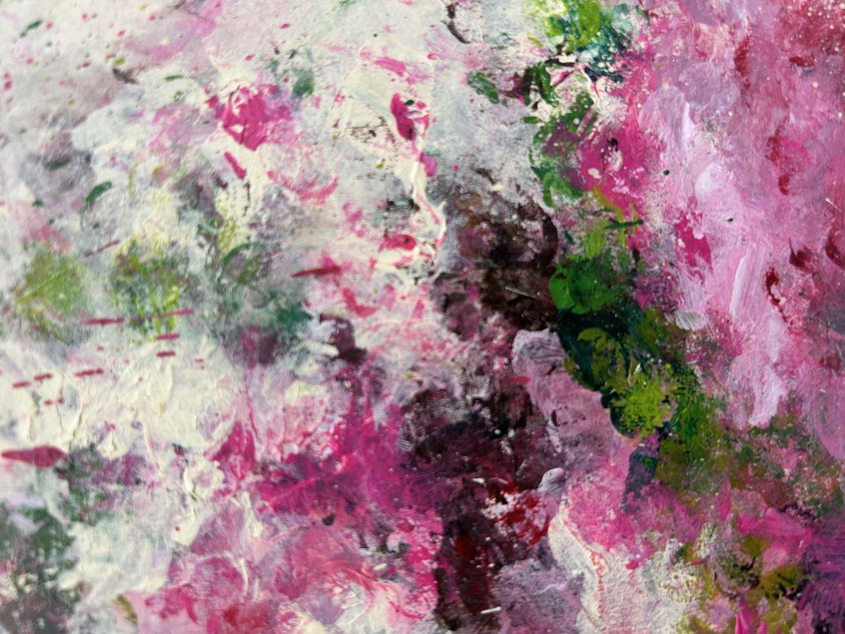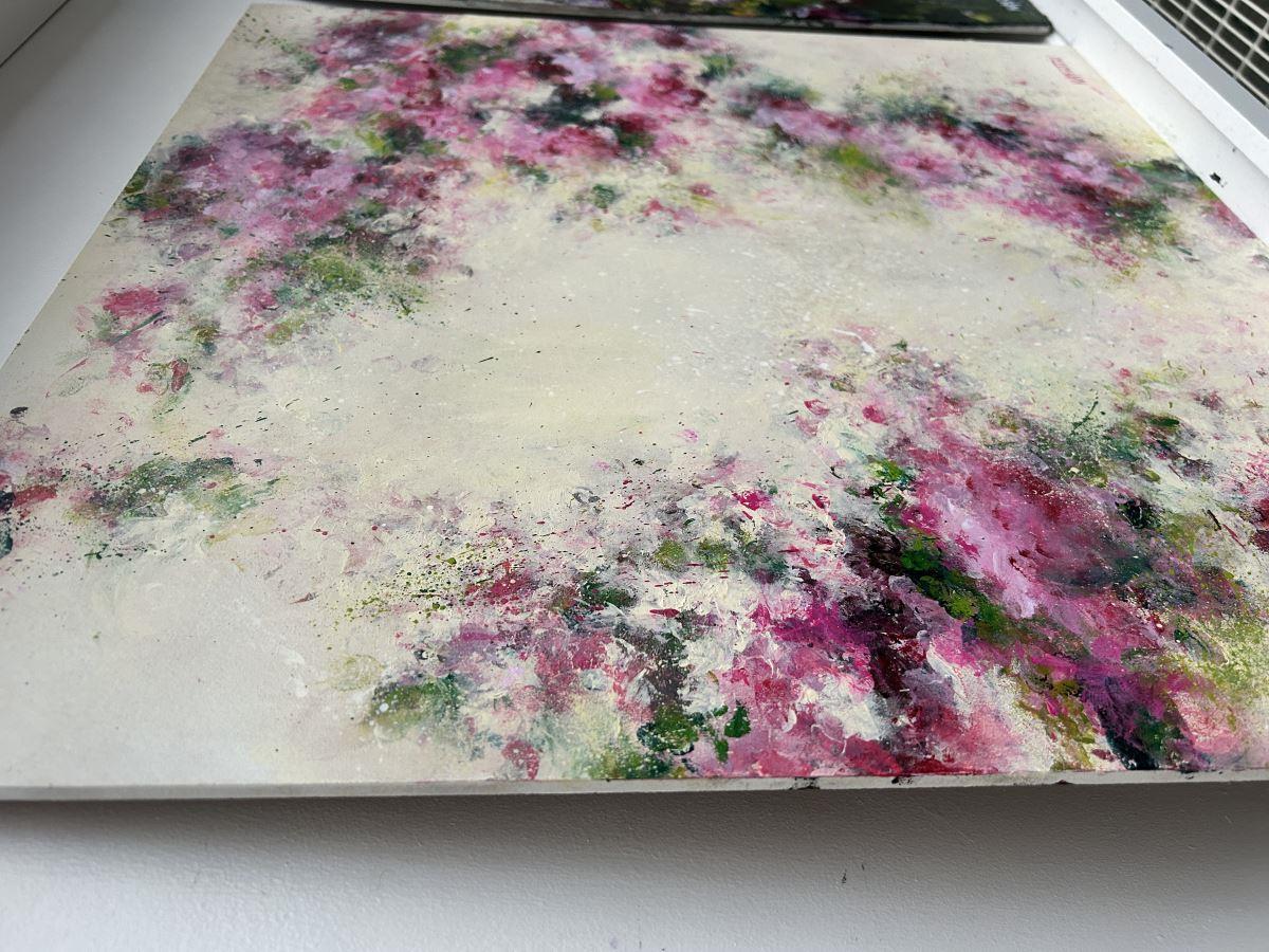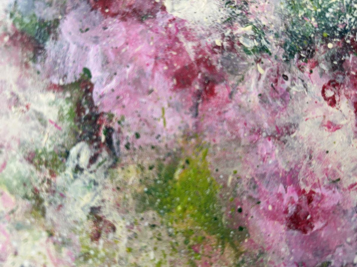 LOVING YOU IS EASY was created with my fingers, an intuitive technique whereby the paint feels its way across the surface in a loose, abstract fashion. Through each layer the flowers emerge, creating movement and unpredictability, allowing the painting to evolve organically.