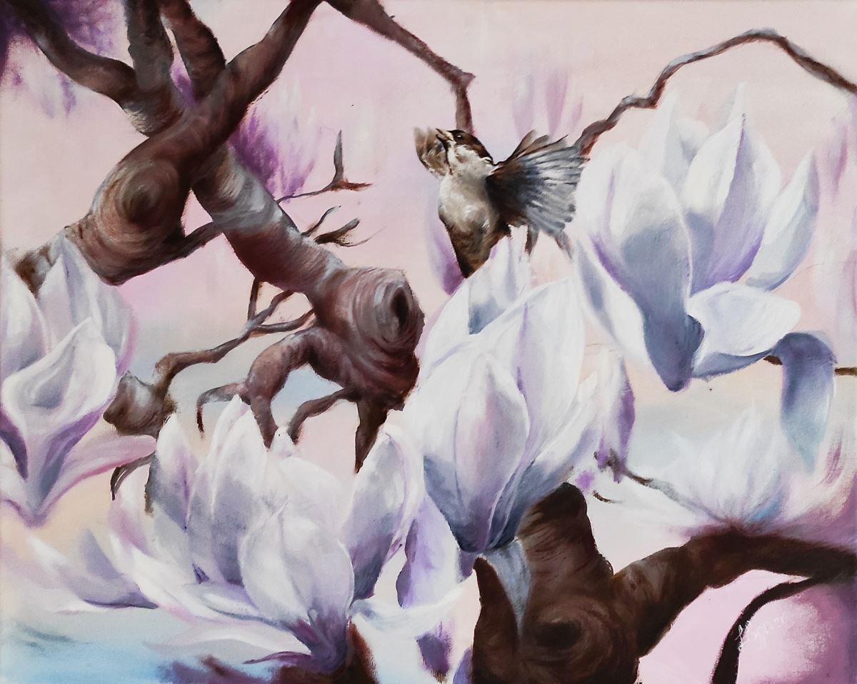 Whenever Spring comes everyone loves it - you, me, even a little Sparrow singing at the tree... I admire a beautiful Magnolia blossom,it's always been a moment of inspiration for me, when a wonderful white and pink flowers are opening for the world...!Love it!