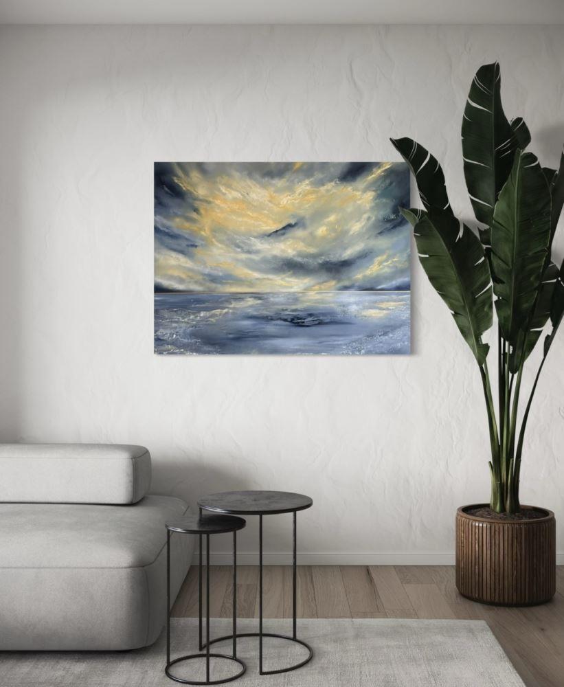 Inspired by the north coast of Cornwall, Atlantic Light — North Coast explores the meeting of sea and sky at the far western edge. The painting focuses on light as a presence—fleeting, luminous, and immersive—suggesting both the vastness of the Atlantic and a more introspective, dreamlike space.