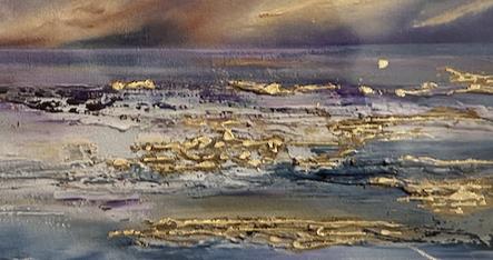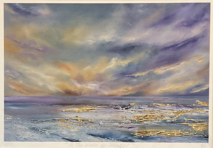 This mounted hand-embellished print invites you into a serene shoreline moment, where the ebb and flow of the tide mirrors the gentle drift of the mind. Soft hues and fluid brushstrokes create a contemplative seascape, while delicate touches of vintage gold leaf catch the light, adding a timeless warmth to the scene. The interplay of texture and shimmer enriches the sense of tranquility, making this piece a visual echo of thoughts and feelings suspended in time.