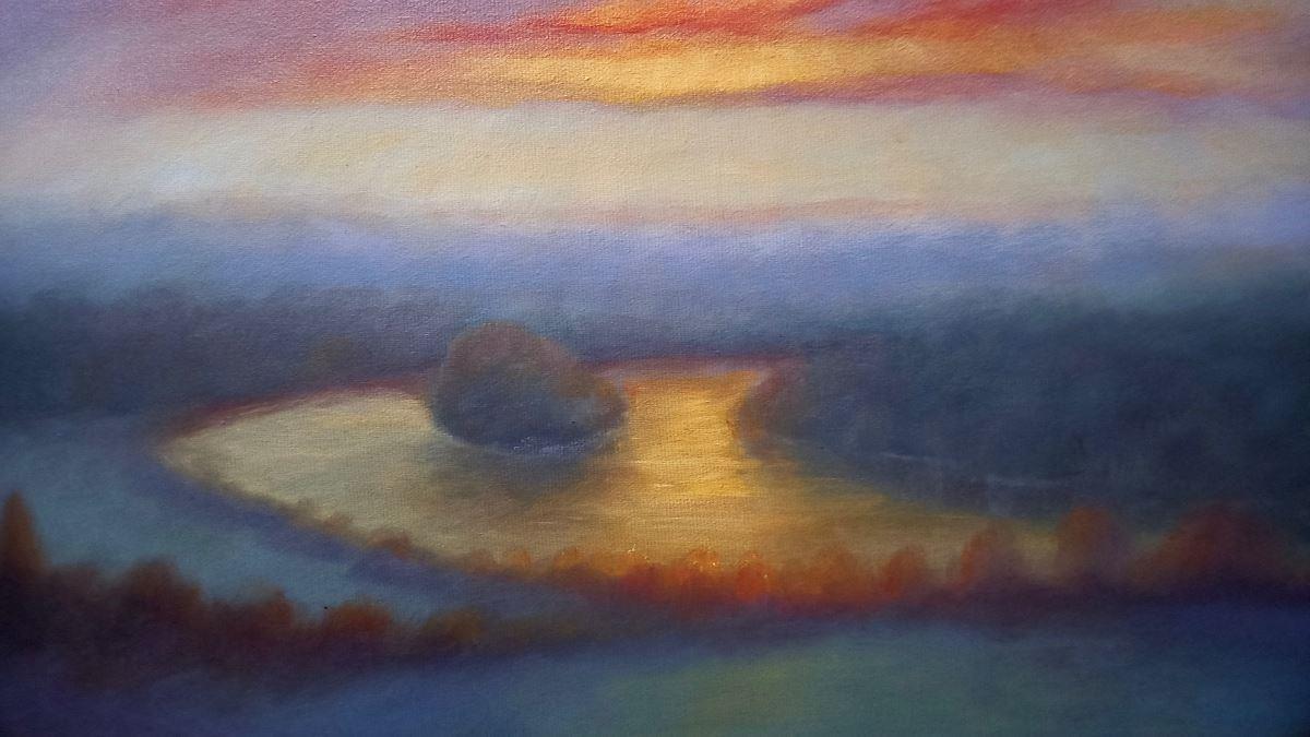 The view from Richmond Hill overlooking Petersham Meadow towards the River Thames, SW London. Impressionism blended with cloud forms to capture that fleeting moment of awakening. The vibrant oranges and soft purples symbolize hope breaking through darkness. This painting brings a serene yet powerful energy, encouraging reflection and renewal, making your space feel alive with promise and the beauty of transformation.