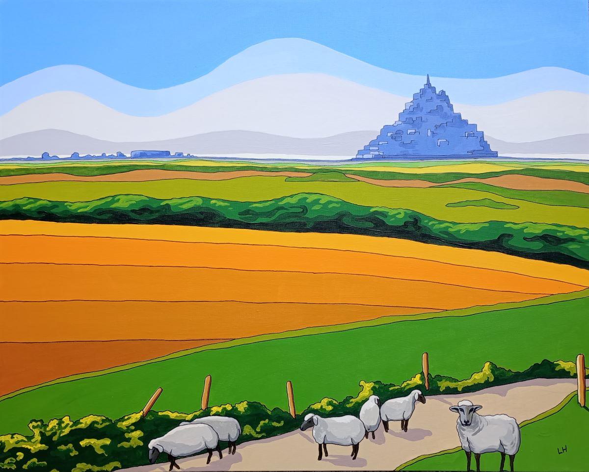The inspiration for this painting came from a photo I took on holiday in France around 10 years ago. We drove to Mont St Michel and stopped to take photos as it appeared in the distance across the fields. I loved the tranquility of the scene with the sheep grazing in the foreground.