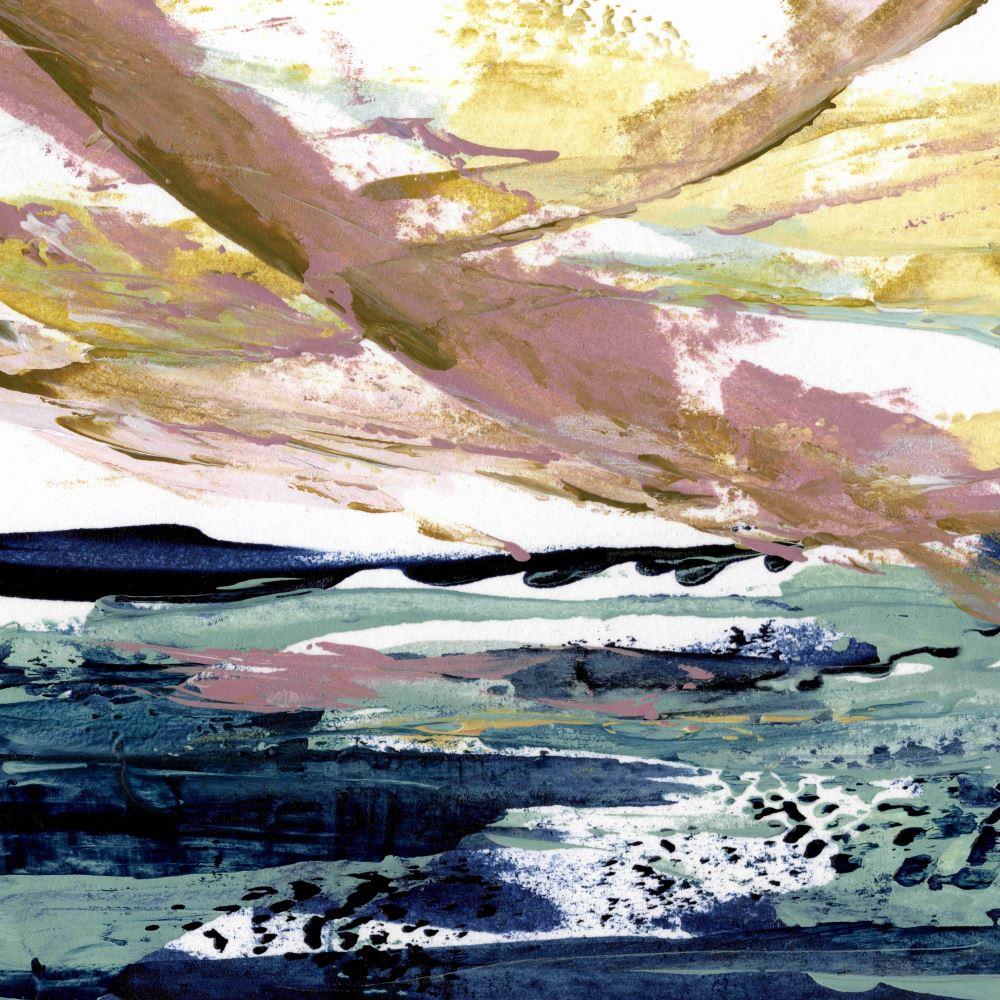 Art Print of acrylic semi-abstract UK seascape inspired by the beautiful transition from summer to autumn, with autumn whispers in the air.